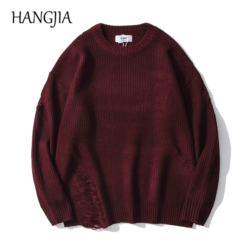 Трикотажный свитер в стиле хип-хоп для мужчин и женщин, рваные пуловеры в стиле Харадзюку с бахромой, красного вина, джемперы для мужчин и женщин icon star icon star icon star icon star icon star