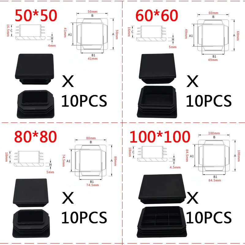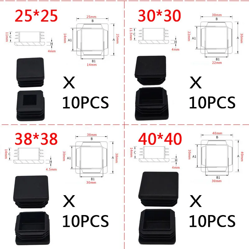 10 шт., черные пластиковые стальные квадратные заглушки для мебельных ножек, Нескользящие защитные накладки для ножек, пластиковые квадратные заглушки для труб