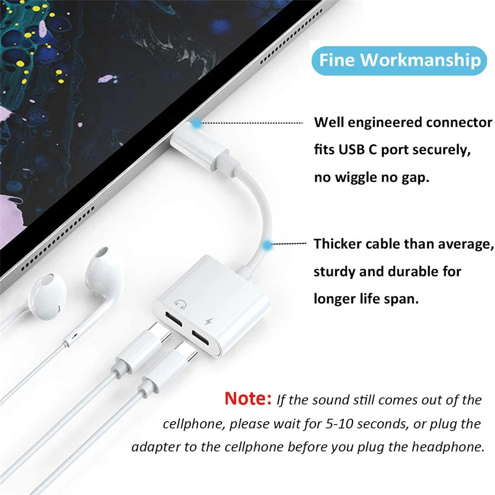 Наслаждайтесь музыкой во время зарядки: Этот адаптер для наушников 2 в 1 имеет два порта типа c. Один порт типа c предназначен для зарядки, другой-для прослушивания или телефонных звонков. Таким образом, вы наслаждаетесь музыкой и одновременно заряжаете свой телефон. Поддерживает зарядку до 20 В/3 А. Купите сейчас, вы избавитесь от проблем с выбором зарядки или прослушивания музыки.