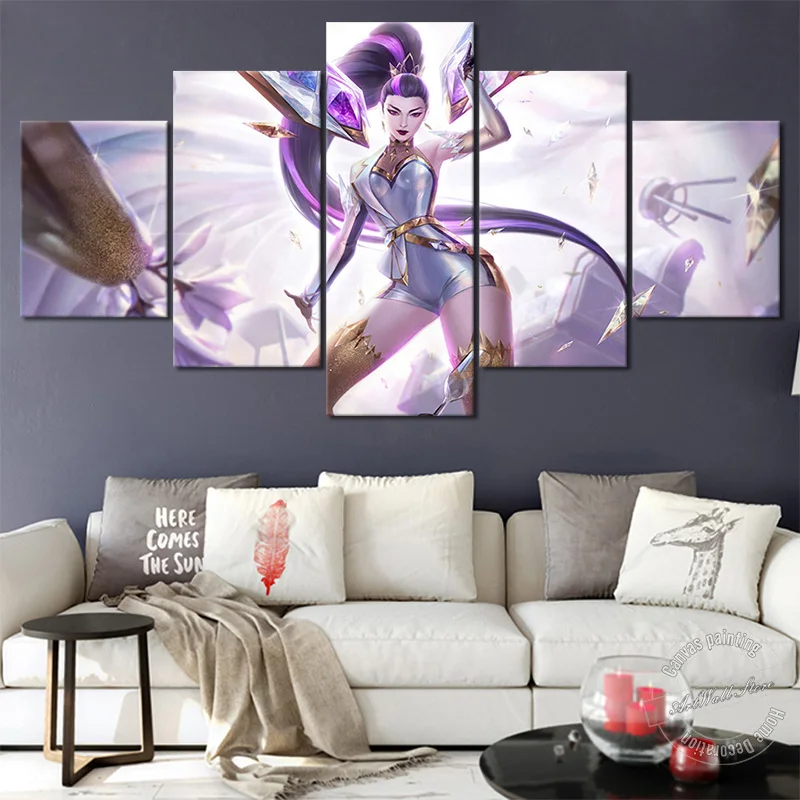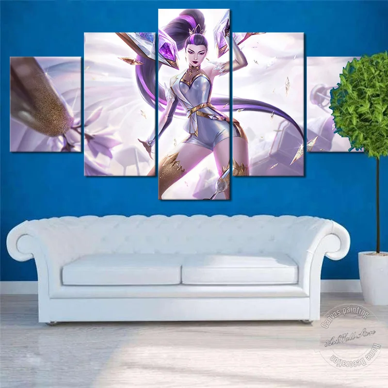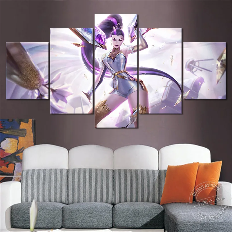 Модульные картины с аниме Akali KDA LOL, 5 панелей, HD принты, плак...
