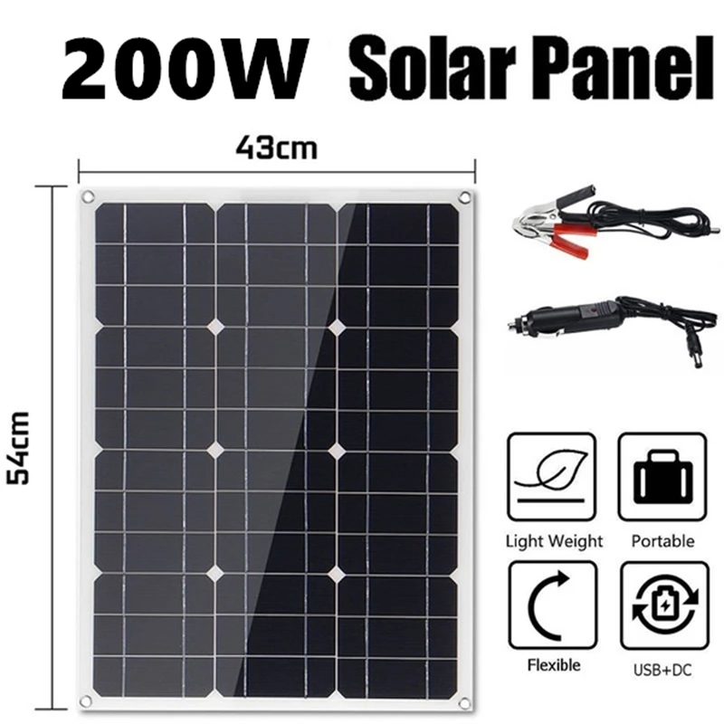 Солнечная панель 200 Вт с контроллером 30 А, 18 в, два USB-порта, Возможность зарядки аккумулятора для Мобильный телефон автомобиля, яхты, автофургона, фонарей