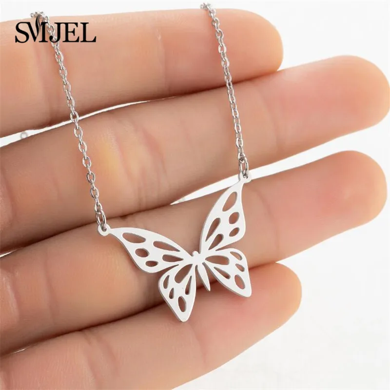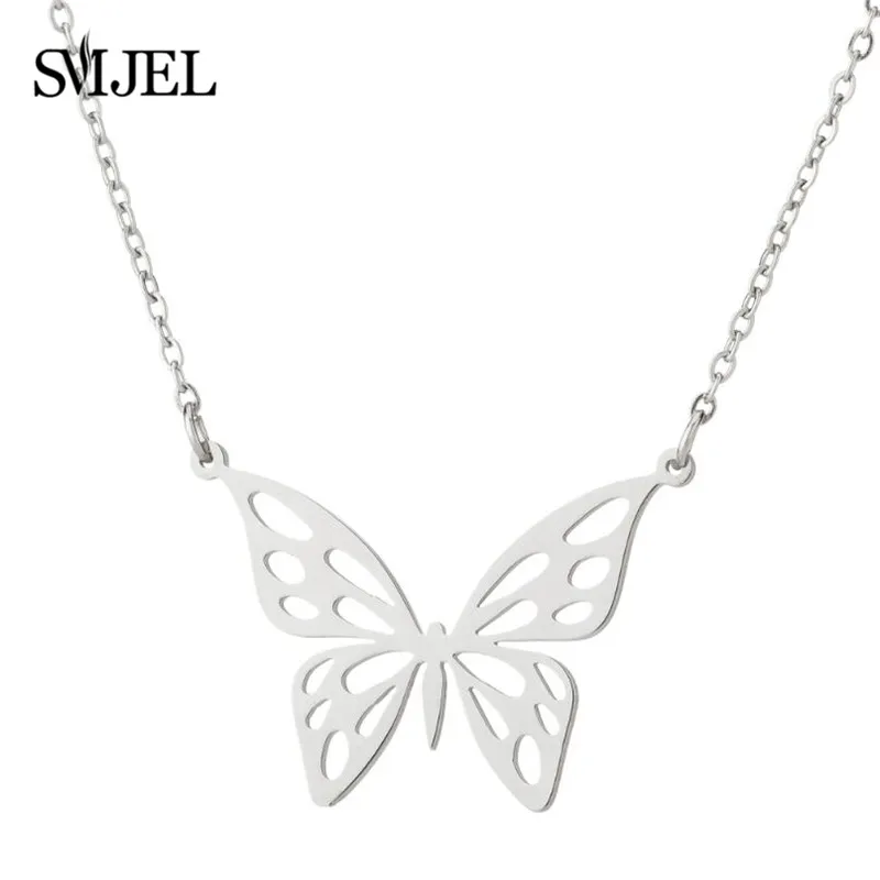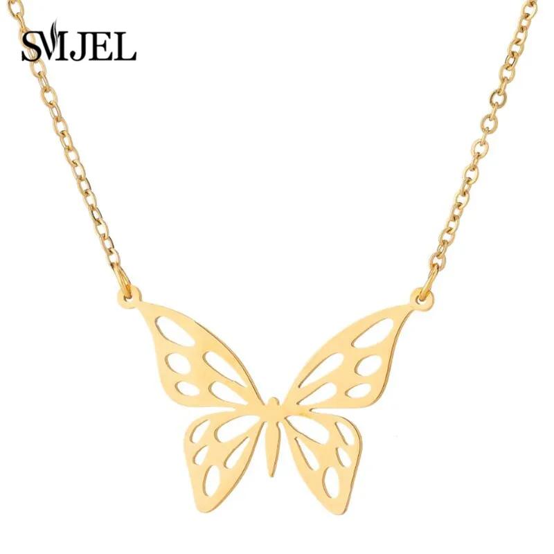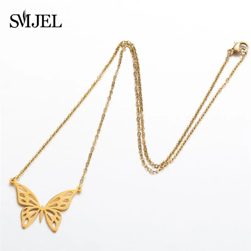 В богемном стиле, с изображением милой бабочки ожерелья подвески для женщин из нержавеющей стали, с милой аппликацией в виде животного колье, модные ювелирные изделия для девушек Collar de mujer