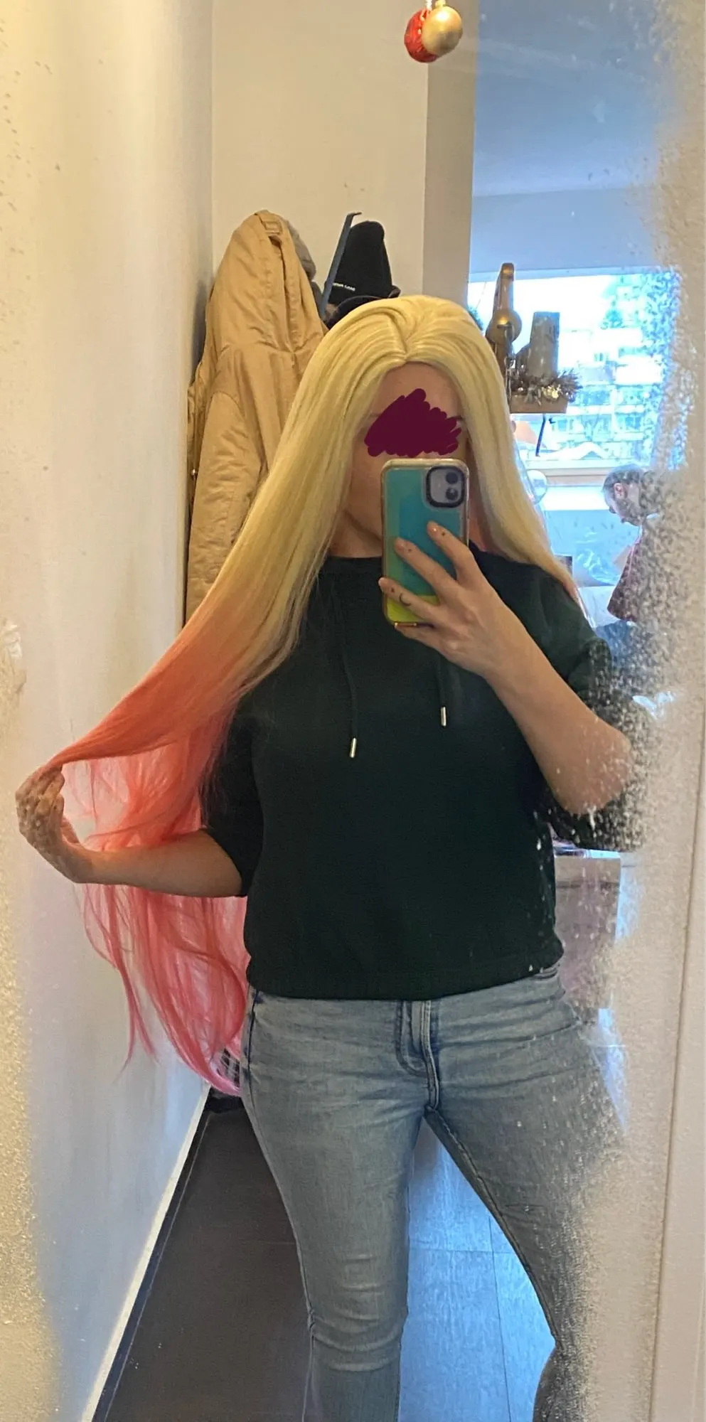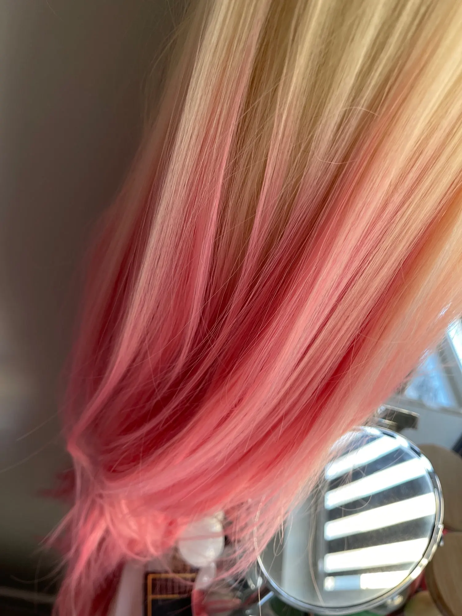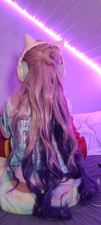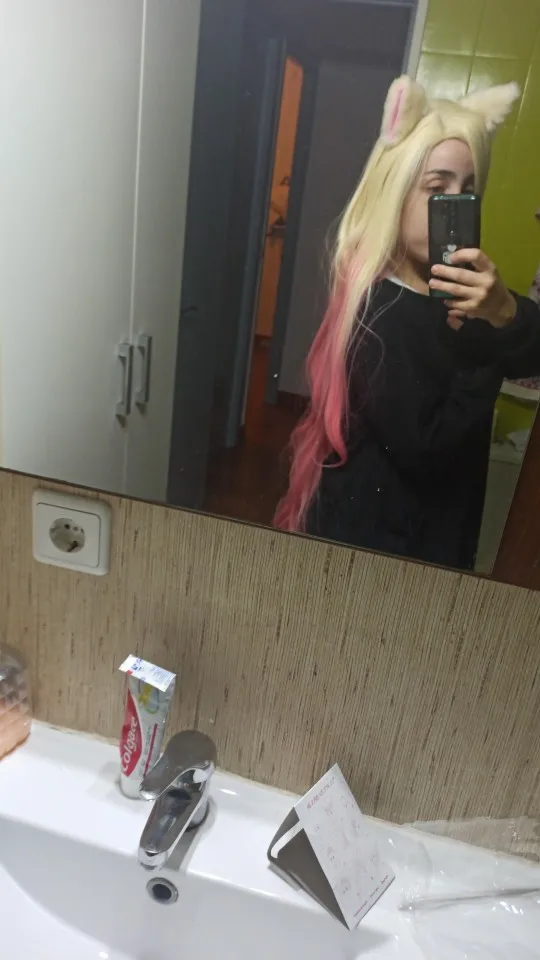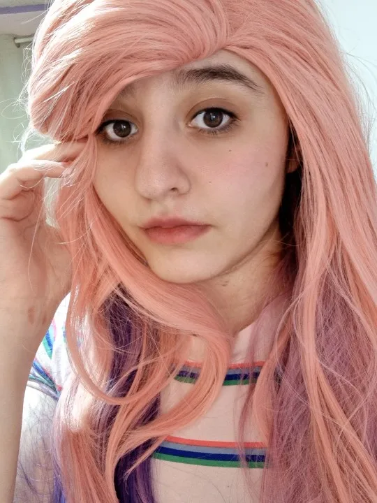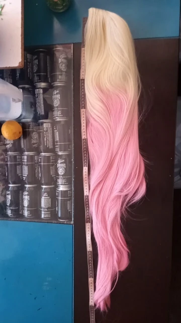 Хороший парик, длинный. Мягкий градиент. Ушки в комплекте были, но они не очень хорошие. Парик состоит из волокна разной длины, сверху волокно покороче,снизу длинное волокно. Парик смотрится хорошо. Он не очень мягкий, слегка путается, но расчёсывается хорошо. Весьма густой.