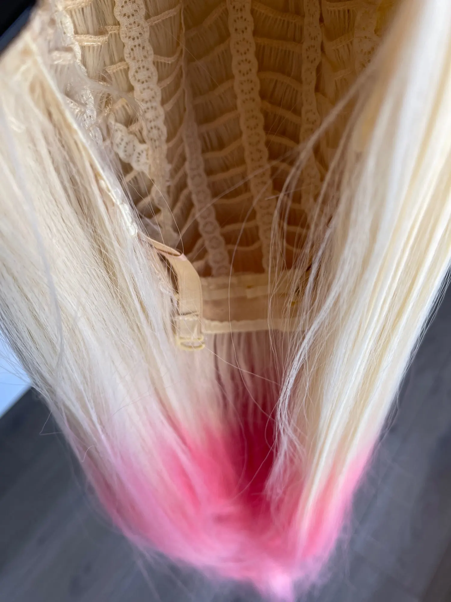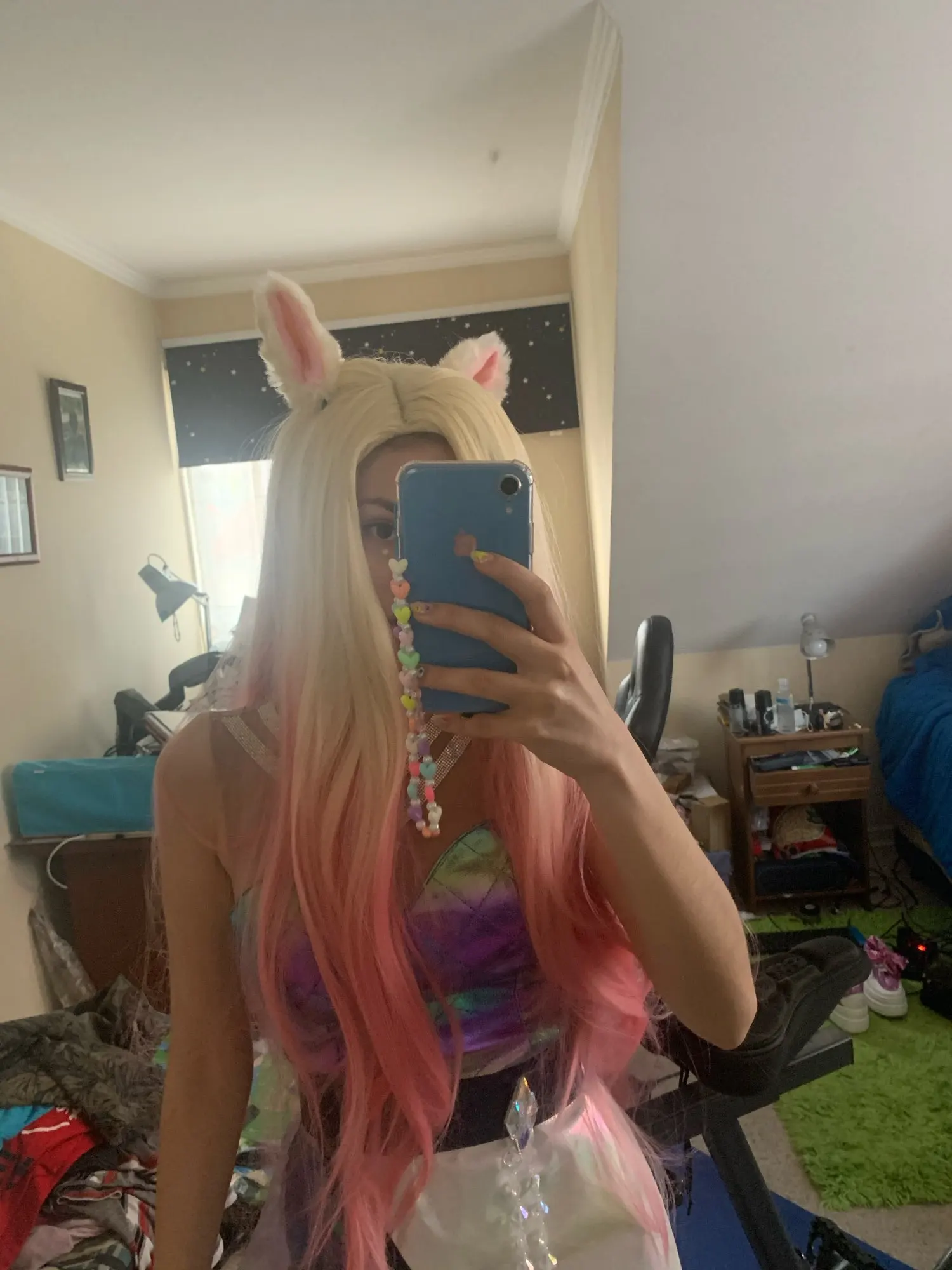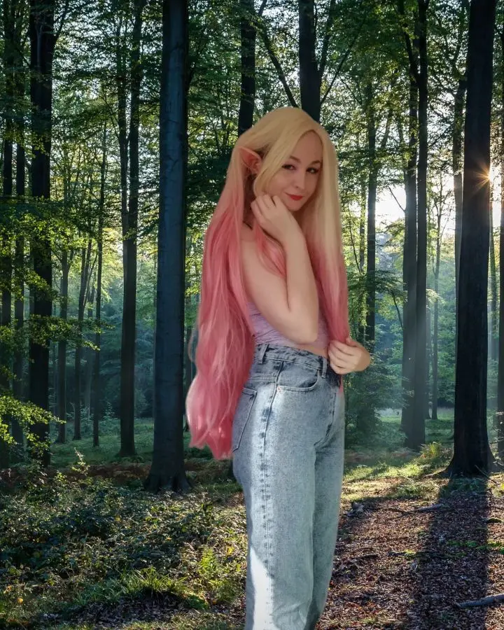Хороший парик, длинный. Мягкий градиент. Ушки в комплекте были, но они не очень хорошие. Парик состоит из волокна разной длины, сверху волокно покороче,снизу длинное волокно. Парик смотрится хорошо. Он не очень мягкий, слегка путается, но расчёсывается хорошо. Весьма густой.