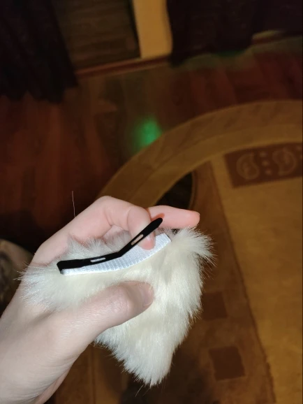 a peruca e linda, a parte loira mais amarela do que branca, o que nao e um problema fica ate mais natural, e ela e beeem grandona e cheia, magnífica. as orelhas nao sao iguais a essa da foto mas sao bem lindas e de uma pelúcia bem fofinha e macia