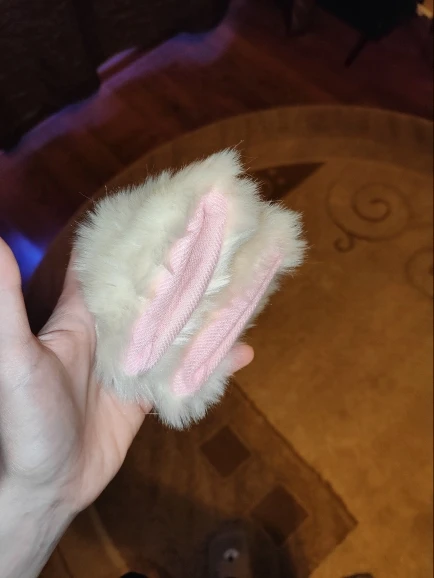 Уши сделаны из плюшевой ткани, а не из волос плюша. Цвет не такой неровный, но и не точный, разница близко заметна. Помимо этой детали парик красивый!