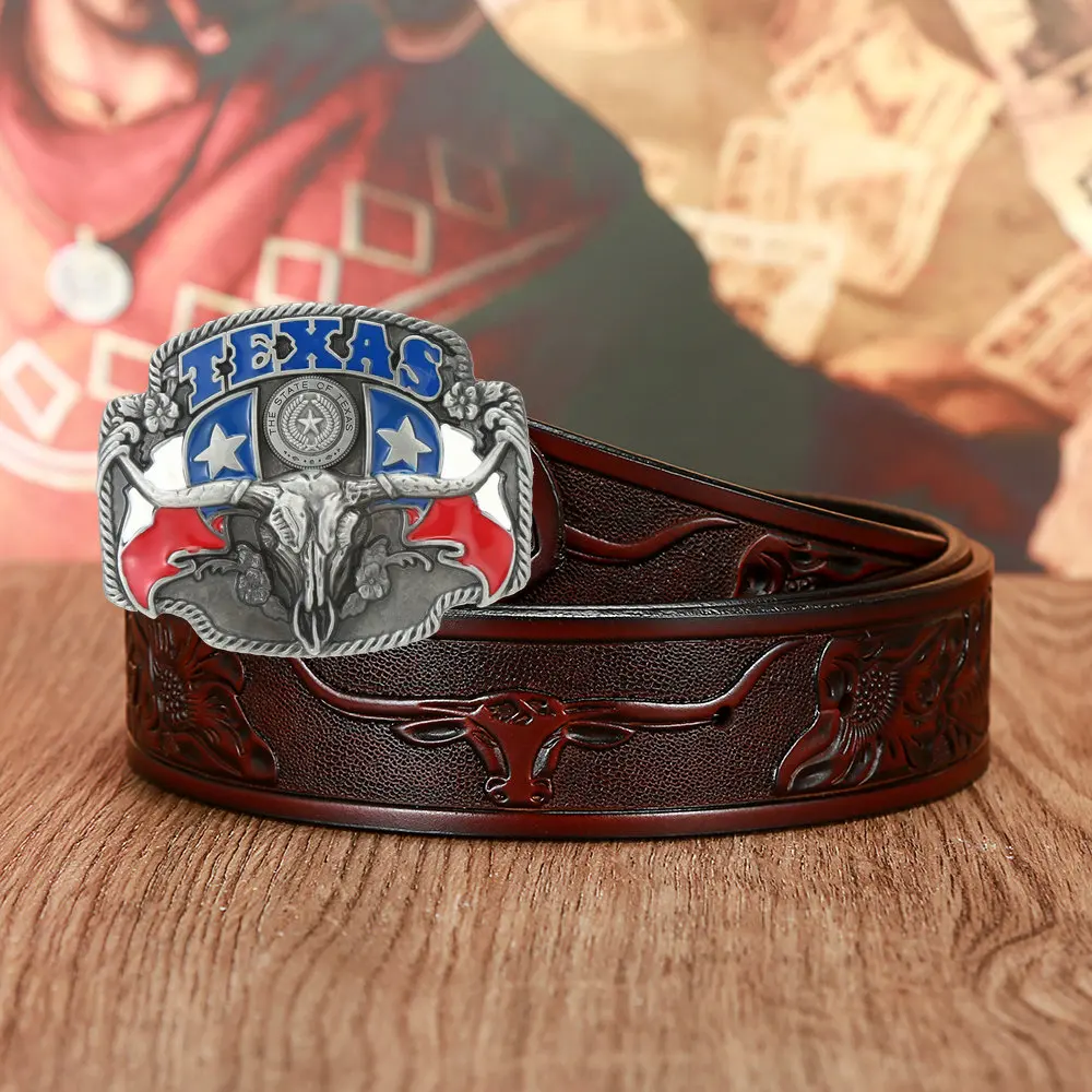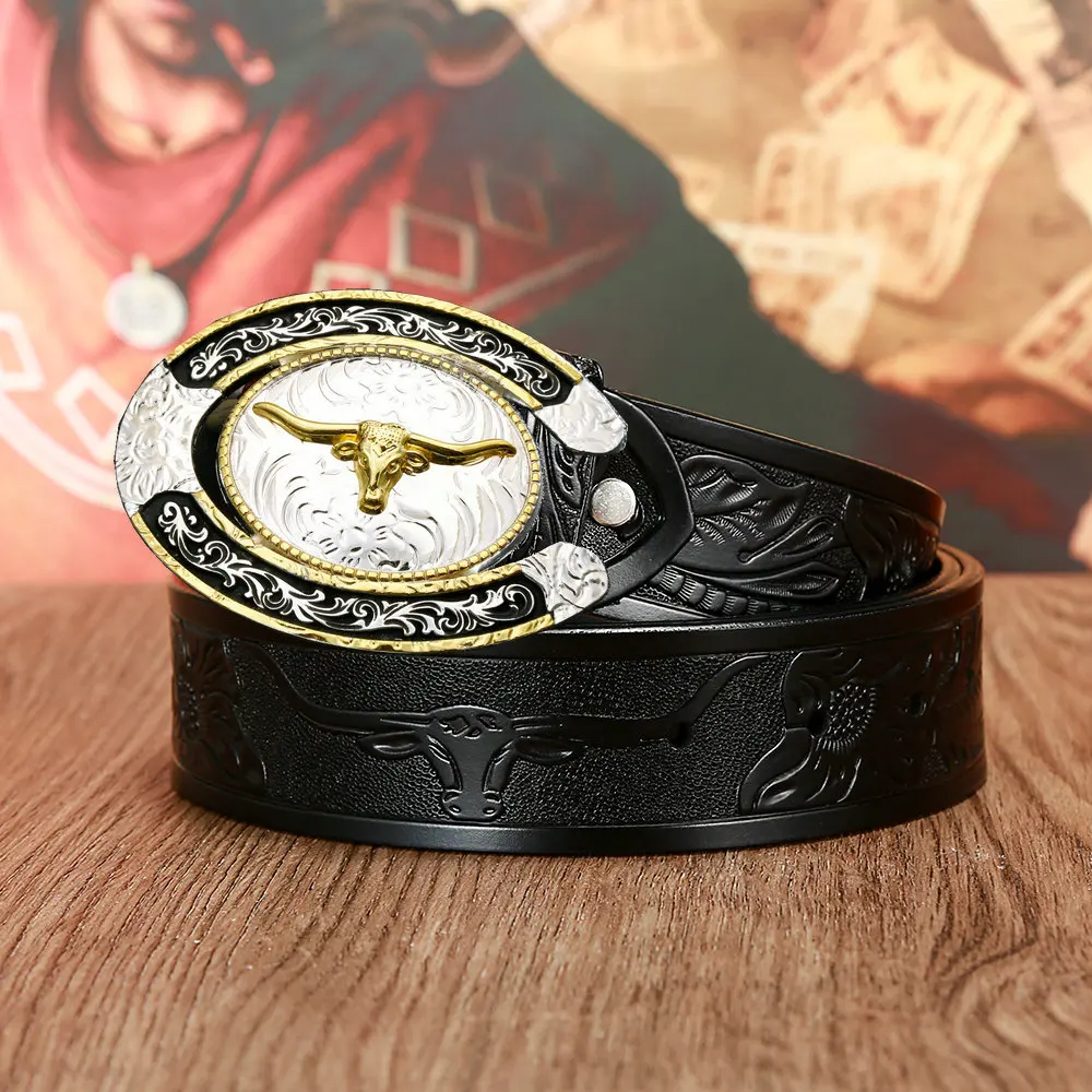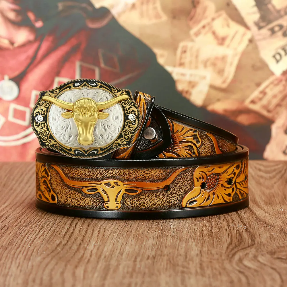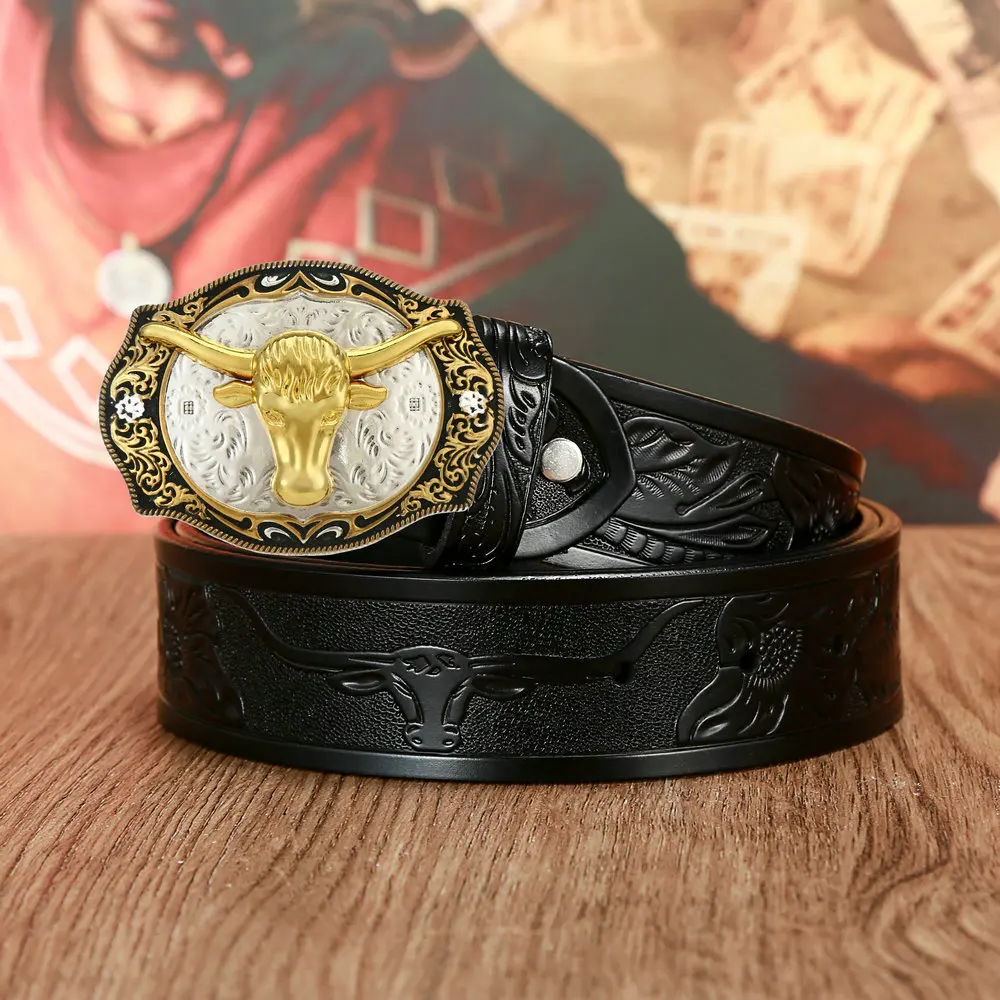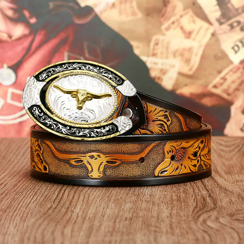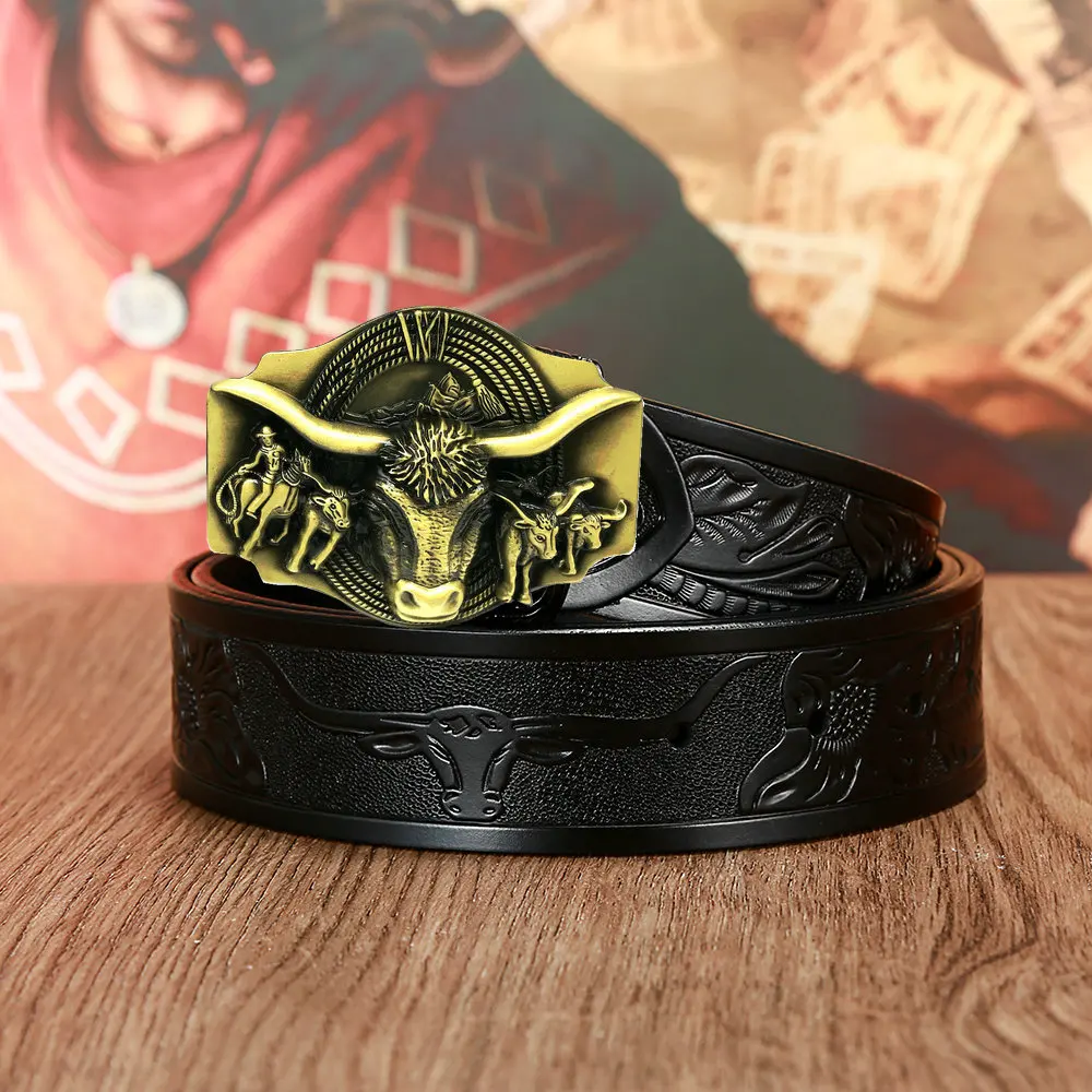 Ремень мужской кожаный с тиснением в Западном ковбойском стиле, Молодежный модный тренд, властная пряжка в виде Головы Быка