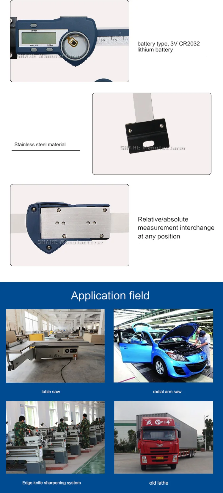 1. Материал из нержавеющей стали, прочная и Надежная эксплуатация2. С монтажными кронштейнами на обоих концах, и монтажными отверстиями сзади3. Быстрое отображение измеряемого значения на большом ЖК-экране4. С выключателем питания и автоматическим выключением для опции5. Четыре функциональные клавиши6. Функция хранения данных7. Измерение скорости 3 м/с8. Установка нуля в любом положении9. Мм/дюйм преобразование измерительной системы10. Относительное/Абсолютное измерение в любом положении