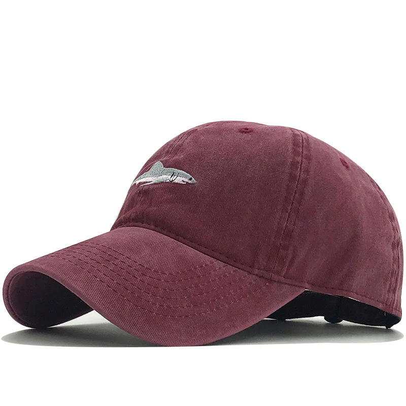 Бейсболка мужская с вышивкой акулы, бейсболка в стиле хип-хоп, изогнутая шапка с вышивкой, с лямкой на спине, летняя Рыбка, Кепка От Солнца