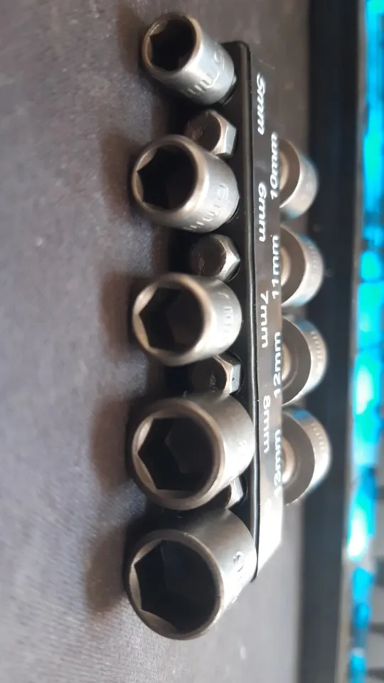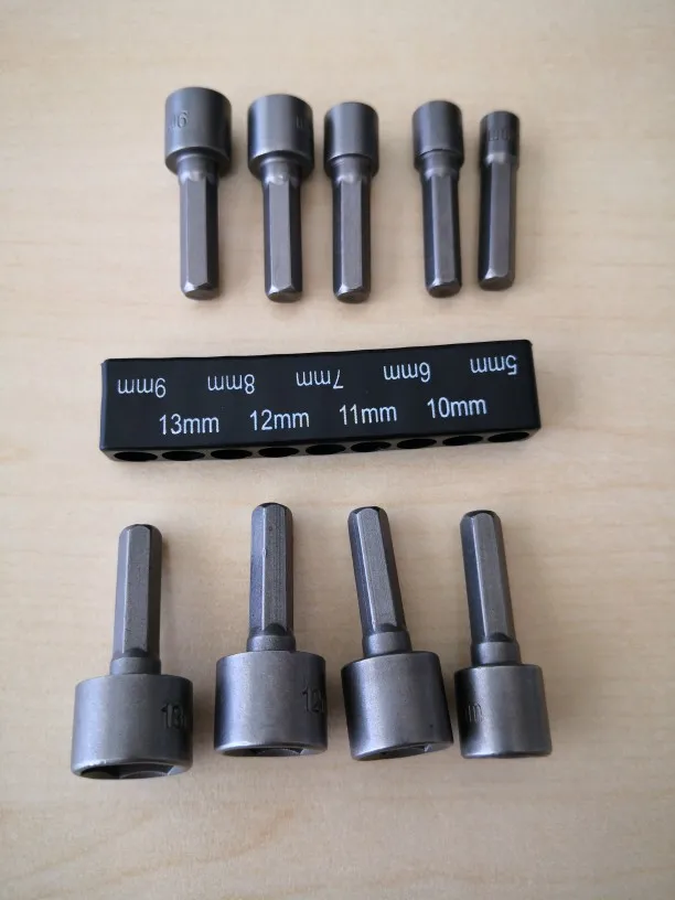 Набор шестигранных головок 9 шт. 5-13mm под отвёртку от магазина Useful tool store супер классные, поскольку можно использовать без переходника. Поэтому они максимально узкие, что даёт возможность проникать в технологические отверстия не большого диаметра. Вообщем продавца рекомендую, ставлю 5 звезд.