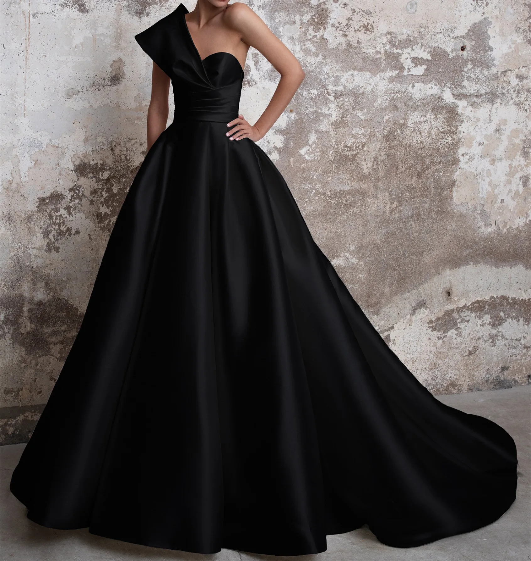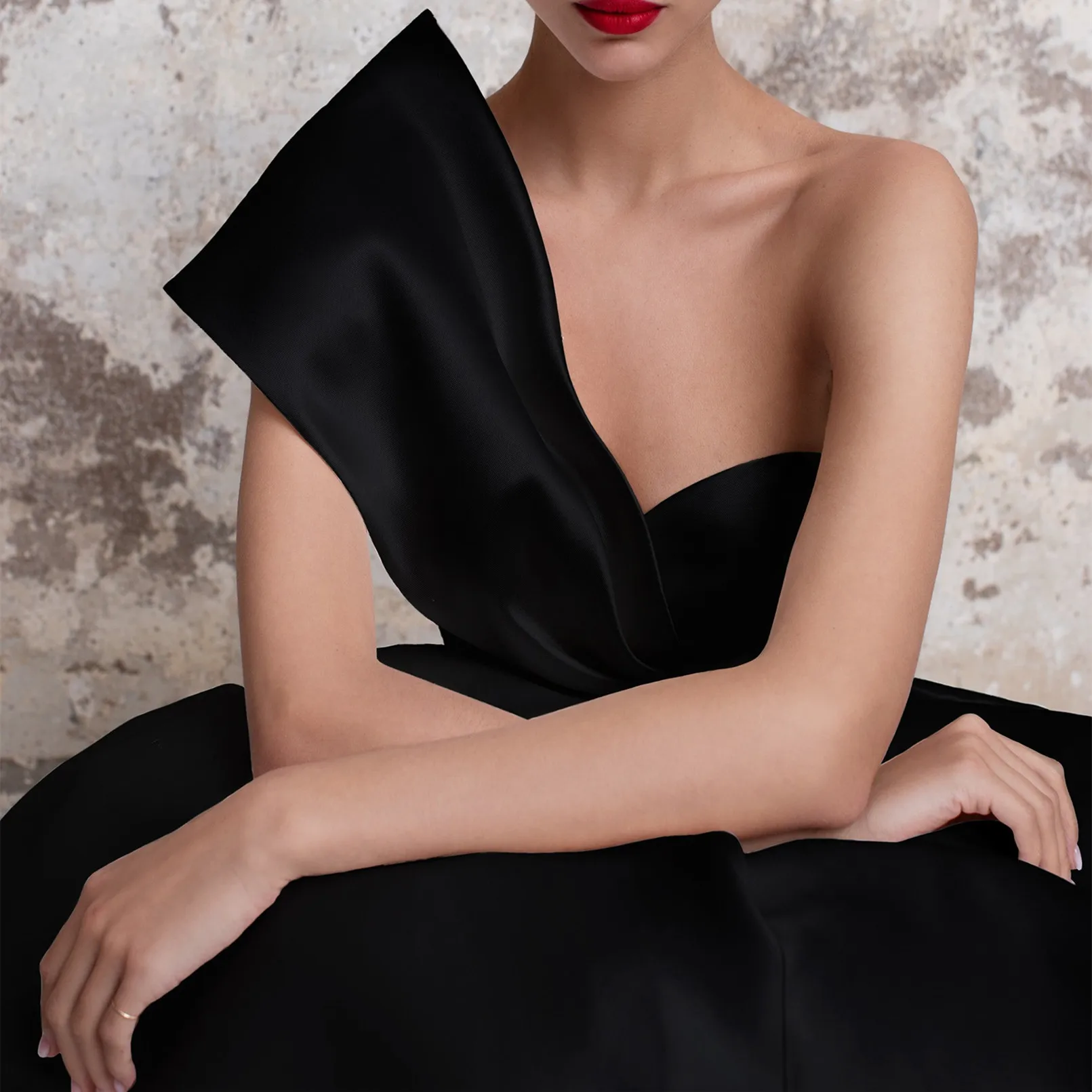 HONGFUYU простое черное вечернее платье на одно плечо с длинным рук...