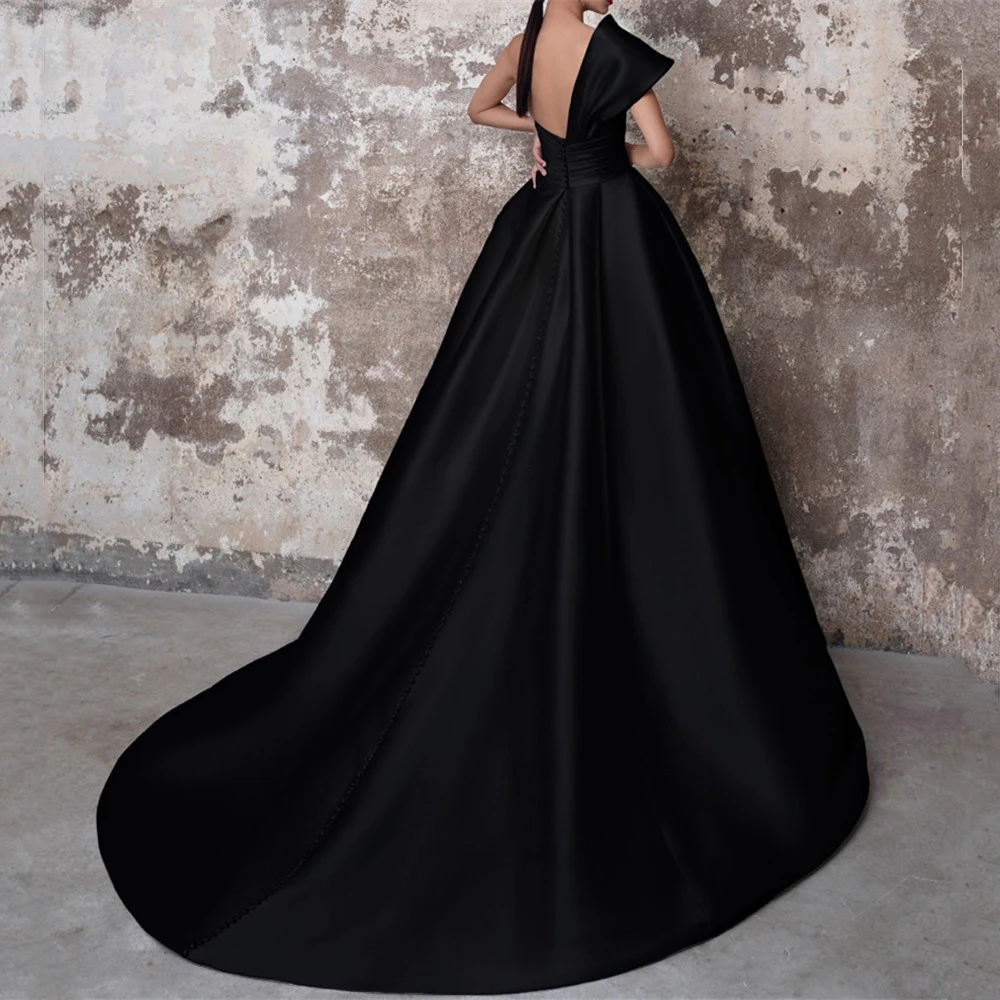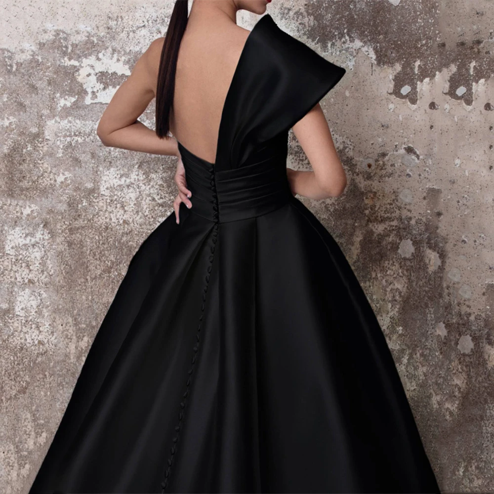 HONGFUYU черные атласные платья с открытыми плечами для выпускного ...