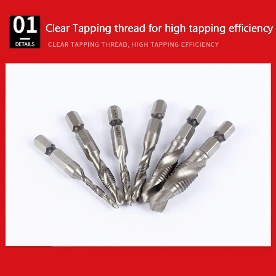 6 шт. х шестигранное сверло из быстрорежущей стали (M3x0.5, M4x0.7, M5x0.8, M6x1, M8x1.25, M10x1.5)