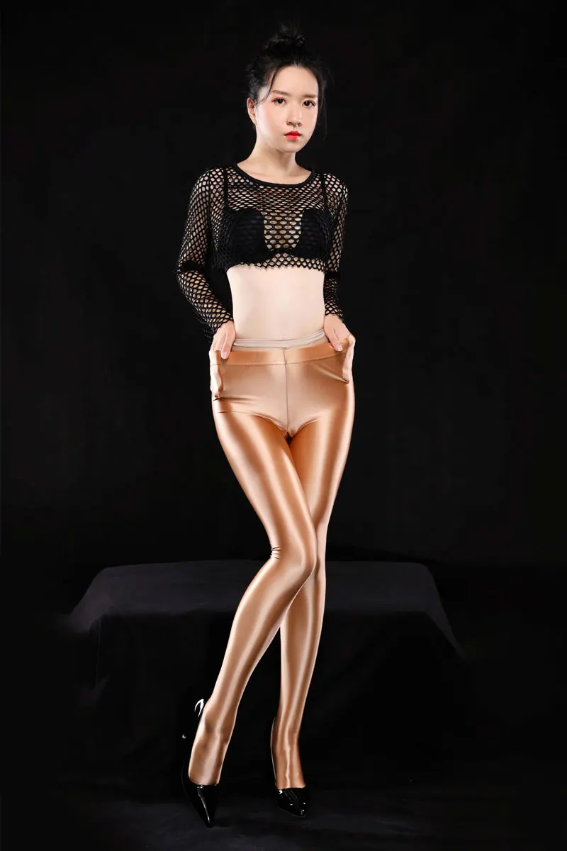 Пикантные блестящие полный карандаш брюки пикантные Легинсы бедра Капри прозрачная и штанов стандартной длинны одежда Карамельный цвет гладкая Одежда для танцев размера плюс F24
