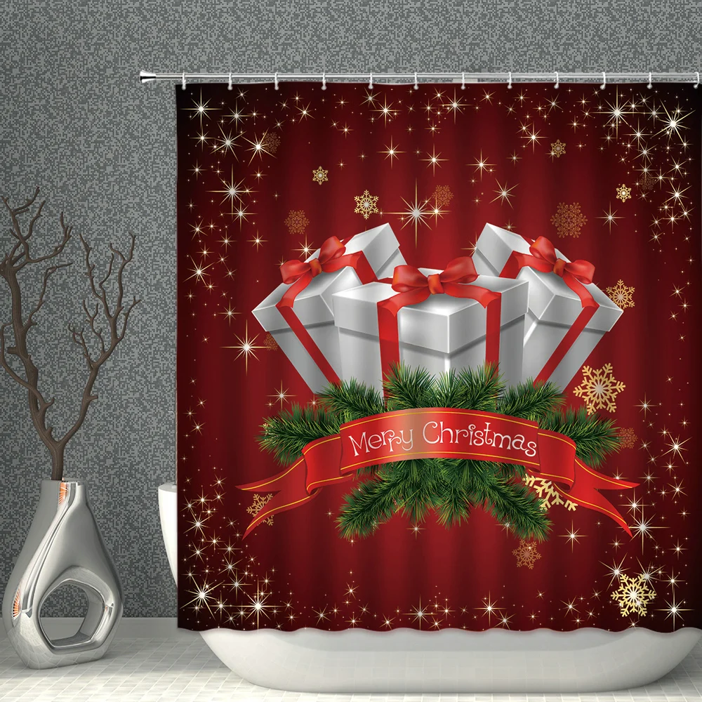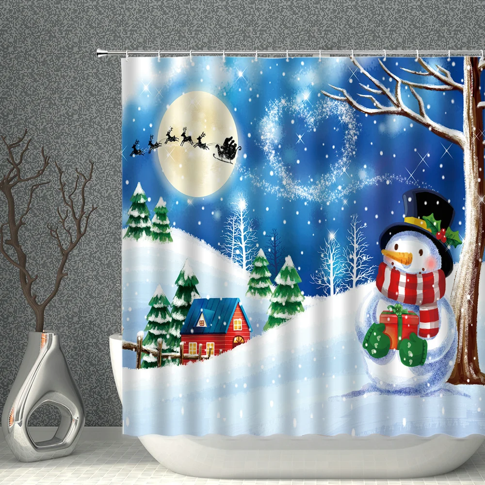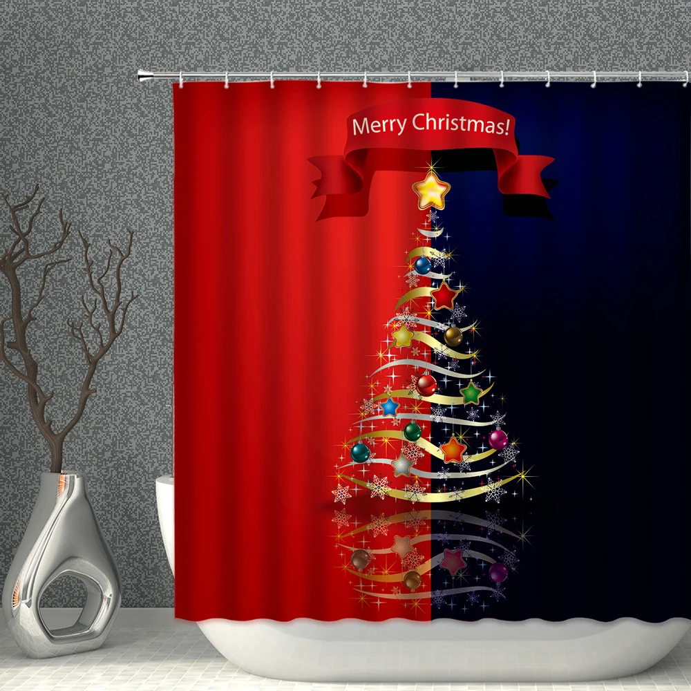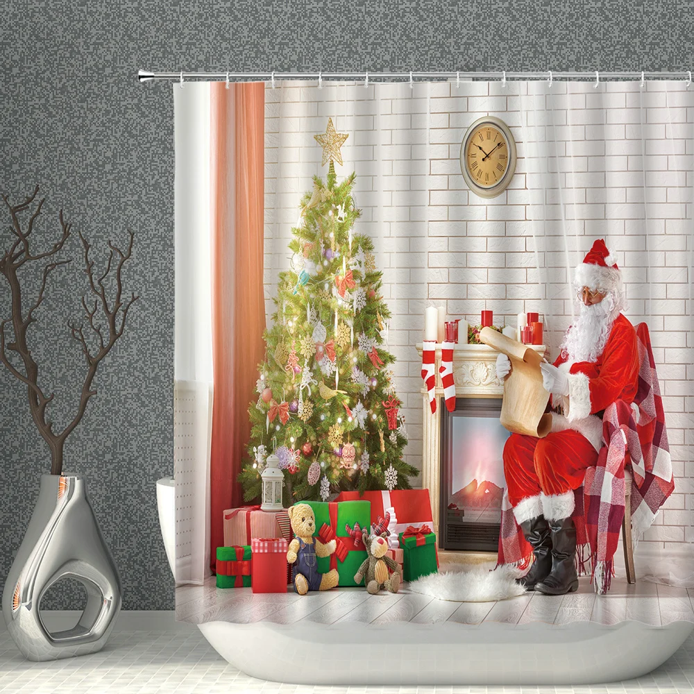 Занавеска для душа из полиэстера, с принтом на новый год, Рождество, водонепроницаемая