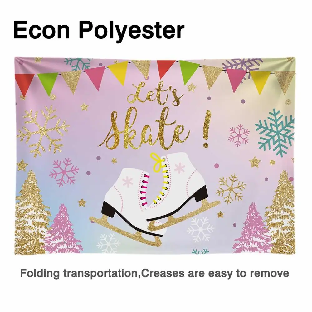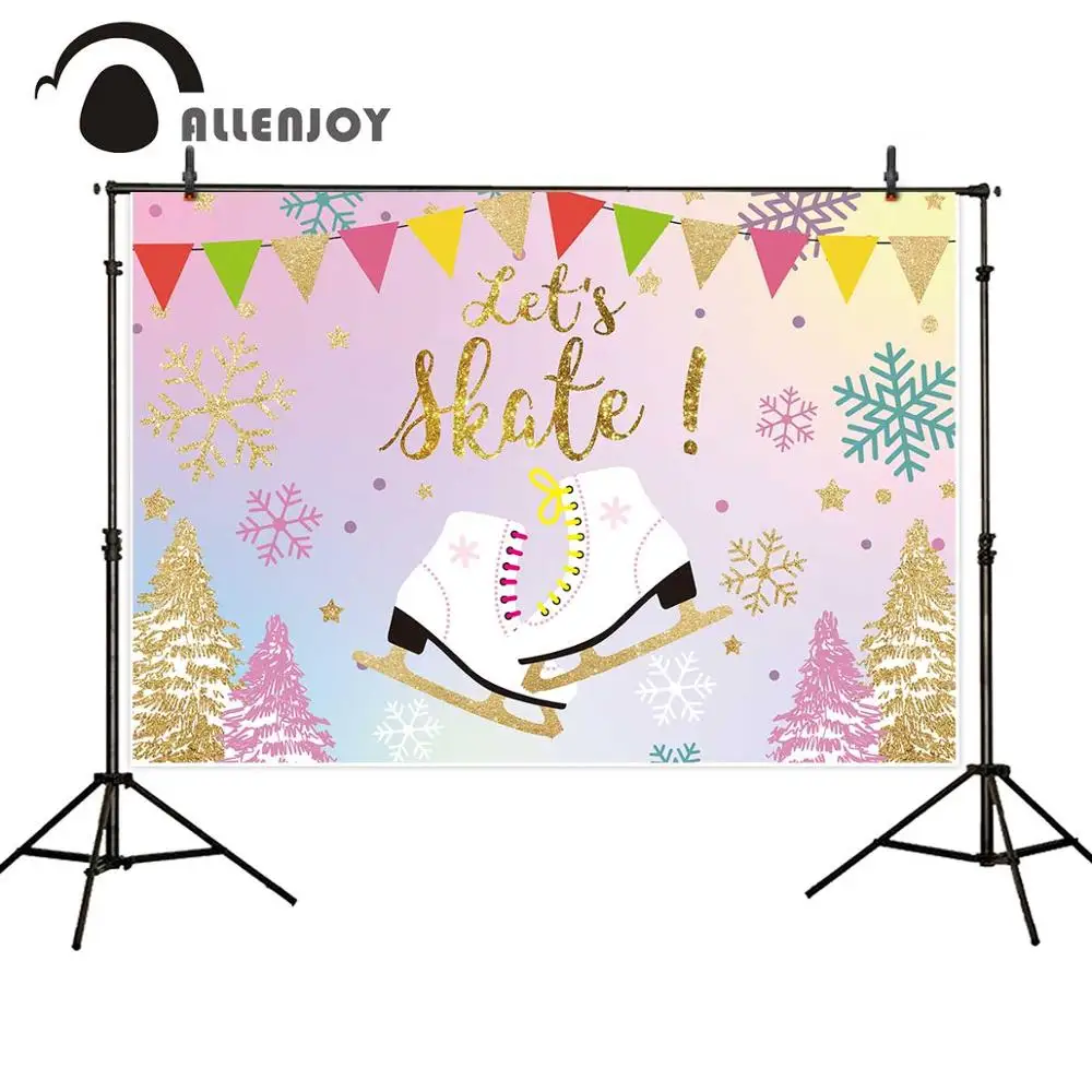 Фон Allenjoy Let's Skates ткань Золотой Снежинка красочное небо Спорт зимвечерние обои принадлежности день рождения события Декор
