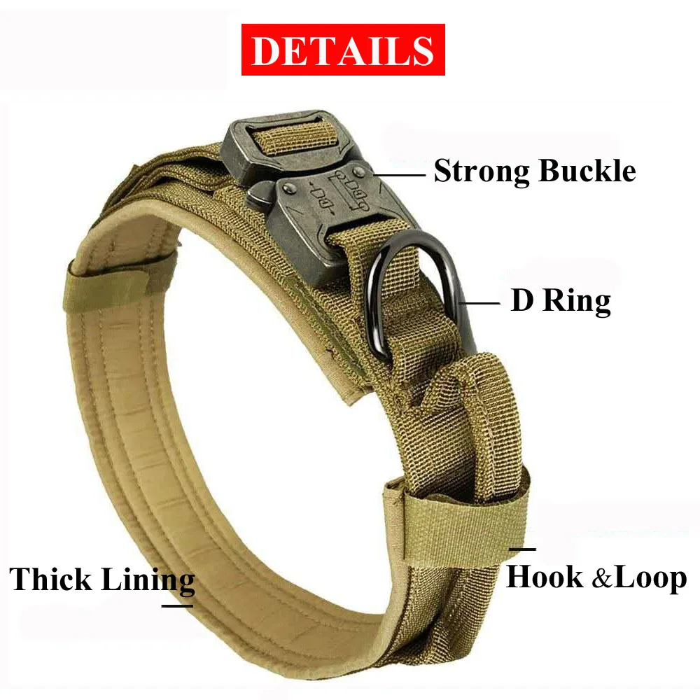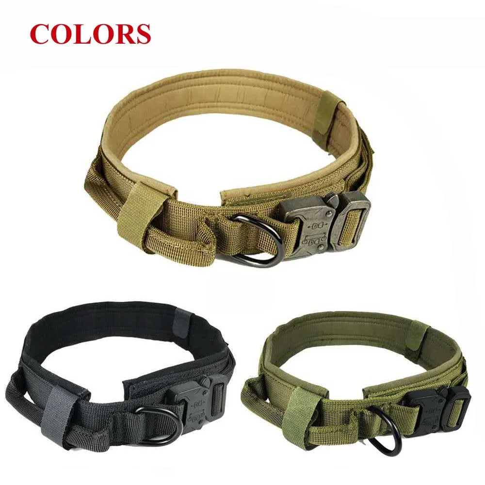 Нейлоновый ошейник для собак, Регулируемый тактический ошейник для больших собак, ручка для тренировки питомца, военный воротничок товары для животных для собак