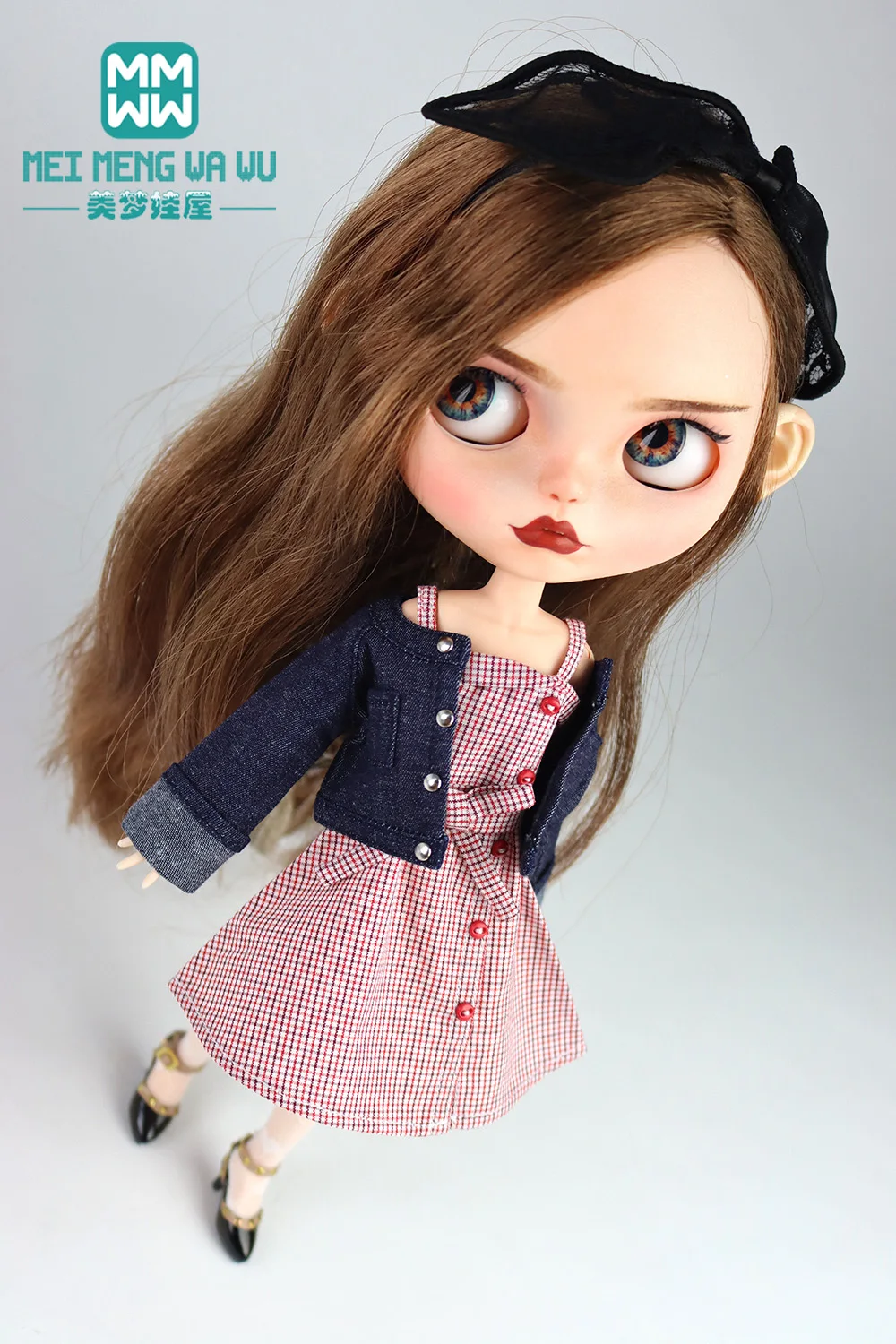 Одежда для кукол Blyth, модная клетчатая юбка, джинсовая куртка для...