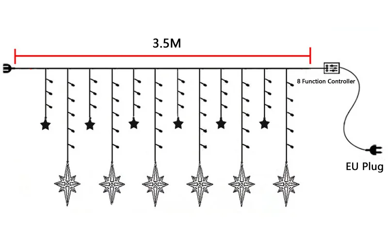 3,5 м светодиодный светильник для занавесок с Северными звездами 220 в EU, Рождественская гирлянда, гирлянда, сказочный светильник s, для улицы, для окна, для свадебной вечеринки, новогодний декор