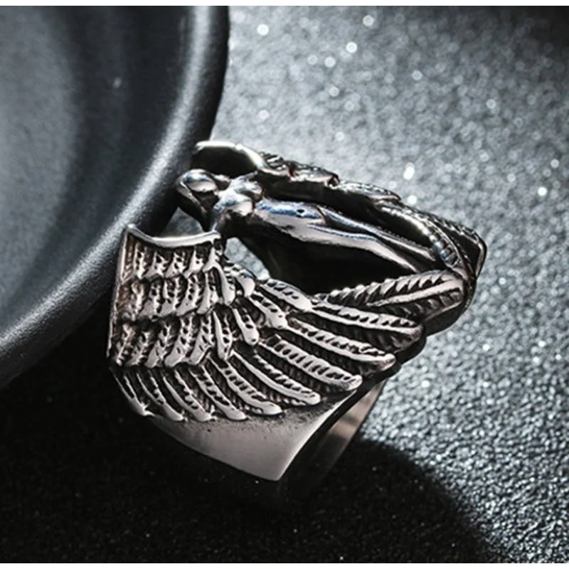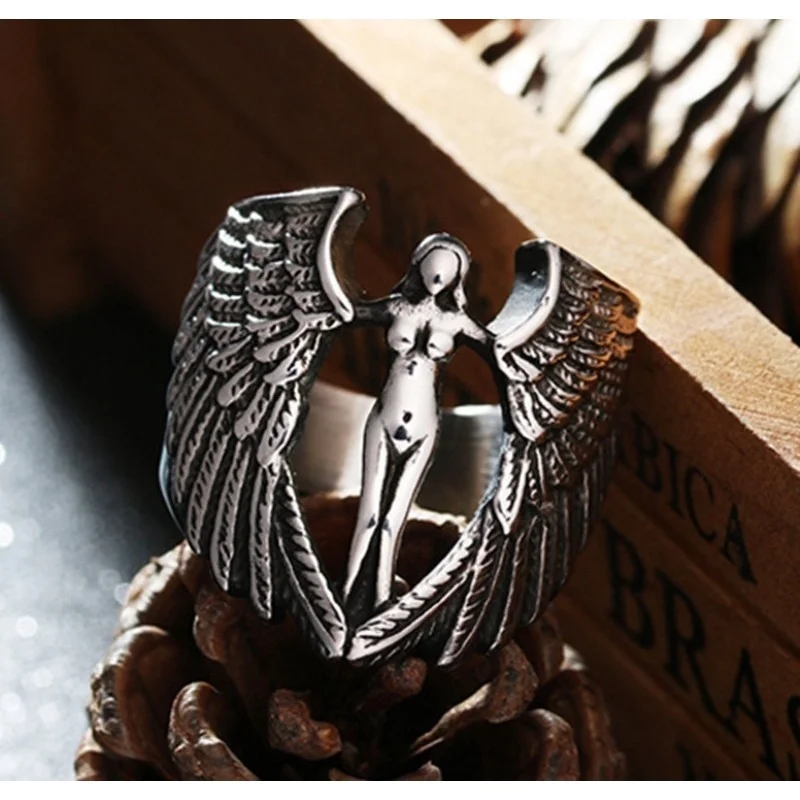 Кольцо в винтажном стиле с ангел-хранитель с крыльями перьями для мужчин и женщин