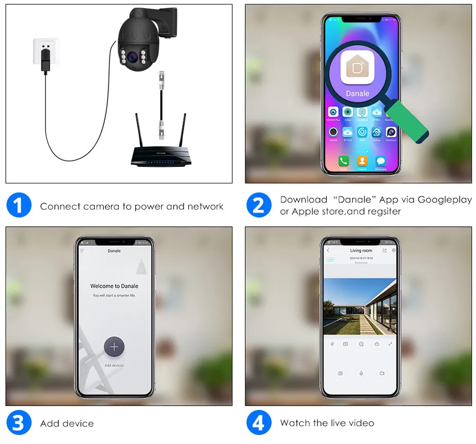 Независимо от того, где вы находитесь, вы можете удаленно получить доступ к камере, чтобы увидеть Потоковую передачу в реальном времени и оставаться на связи. Удаленно просматривайте камеру через: Danale на мобильном устройстве