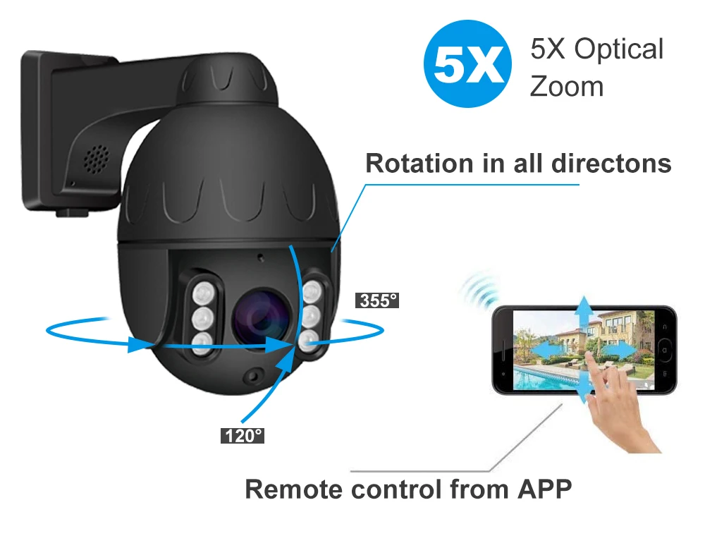 Корпус и корпус из алюминиевого сплава делают ip-камеру водонепроницаемой IP66. Эта купольная наружная камера наблюдения отлично работает снаружи даже в суровых погодных условиях.