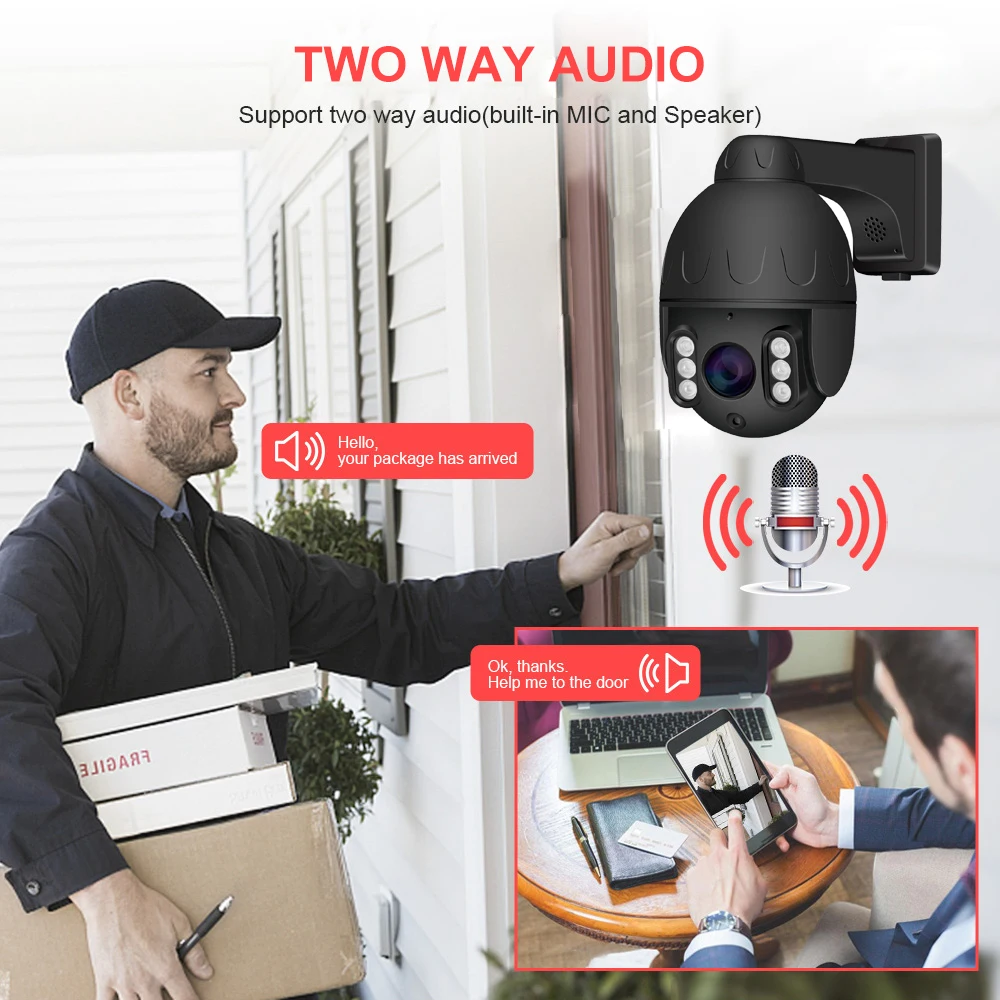 Эта камера видеонаблюдения 5 Мп/8 Мп имеет встроенную функцию одностороннего аудио (встроенный микрофон и динамик), возьмите голос и получите четкий голос с обеих сторон.