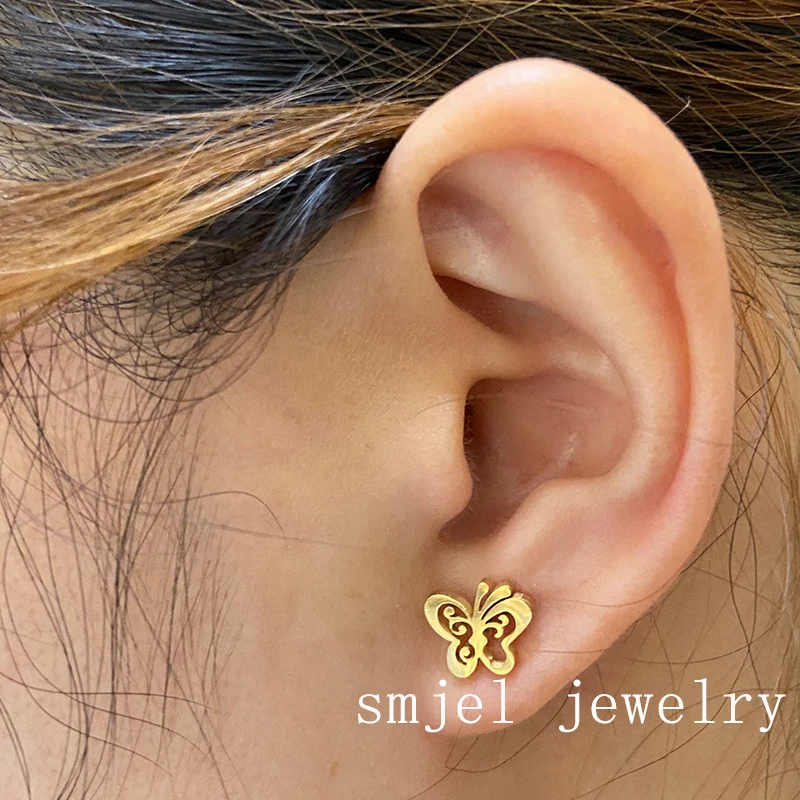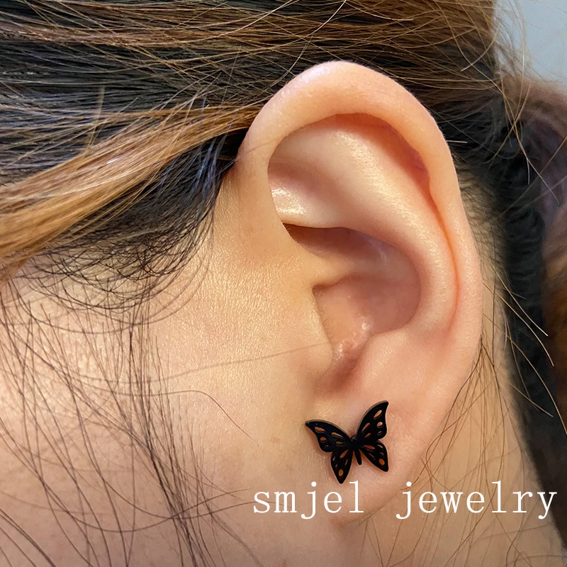 Женские серьги-бабочки из нержавеющей стали, черные маленькие серьги-гвоздики в форме бабочки, Подарочная бижутерия, 2022