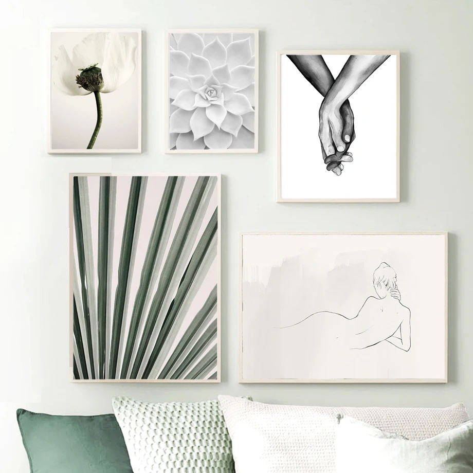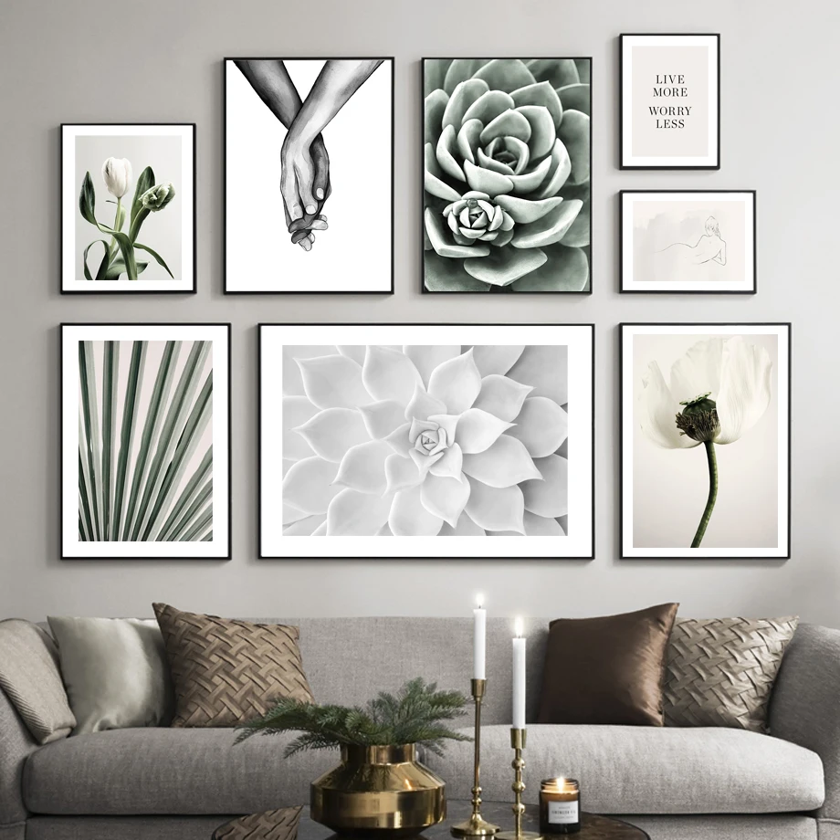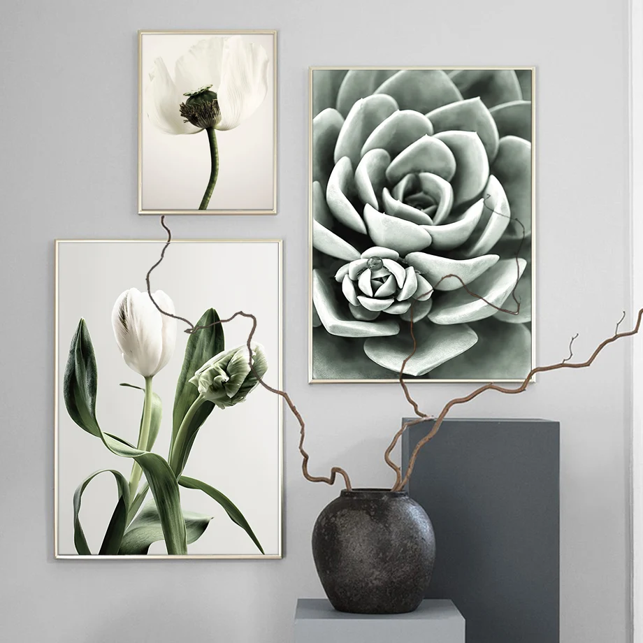Плакат с изображением тюльпанов, кактусов, суккулентов, пальмовых листьев, в скандинавском стиле, для гостиной, Картина на холсте, украшение