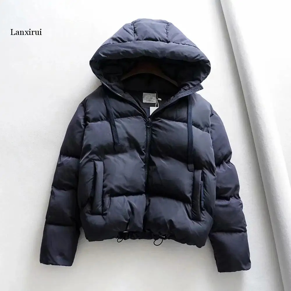 Зимняя Повседневная однотонная короткая хлопковая куртка в простом ...