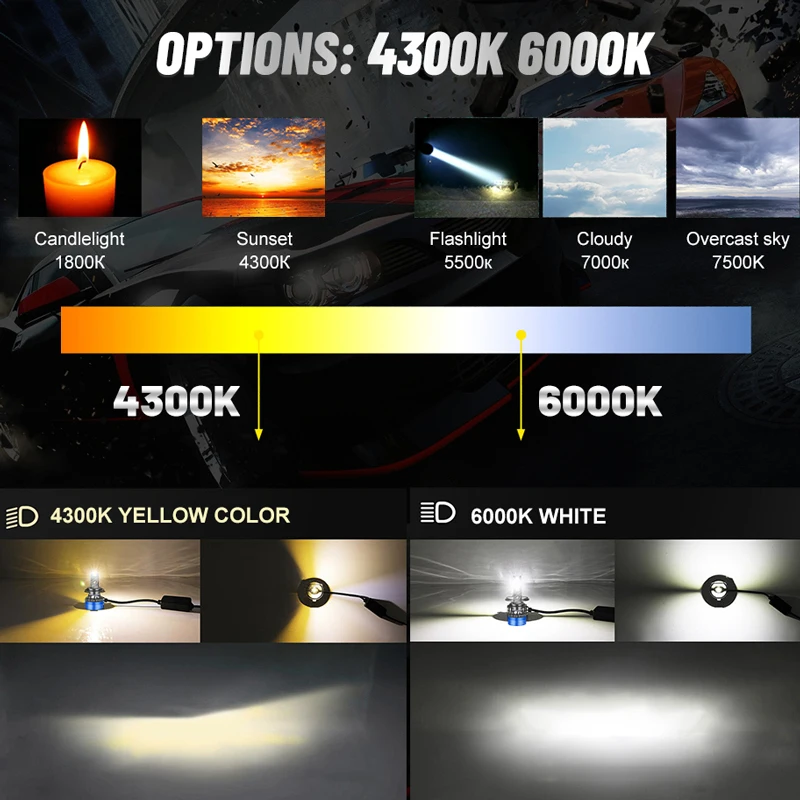 Светодиодные фары H7 s K4S K4C 4300K 6000K 25000LM H1 H8 9012 HIR2 ...