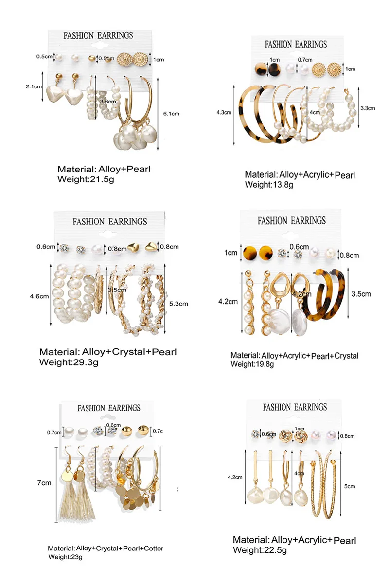 6 шт., женские серьги-гвоздики, винтажный набор, 2021, Женские Ювел...