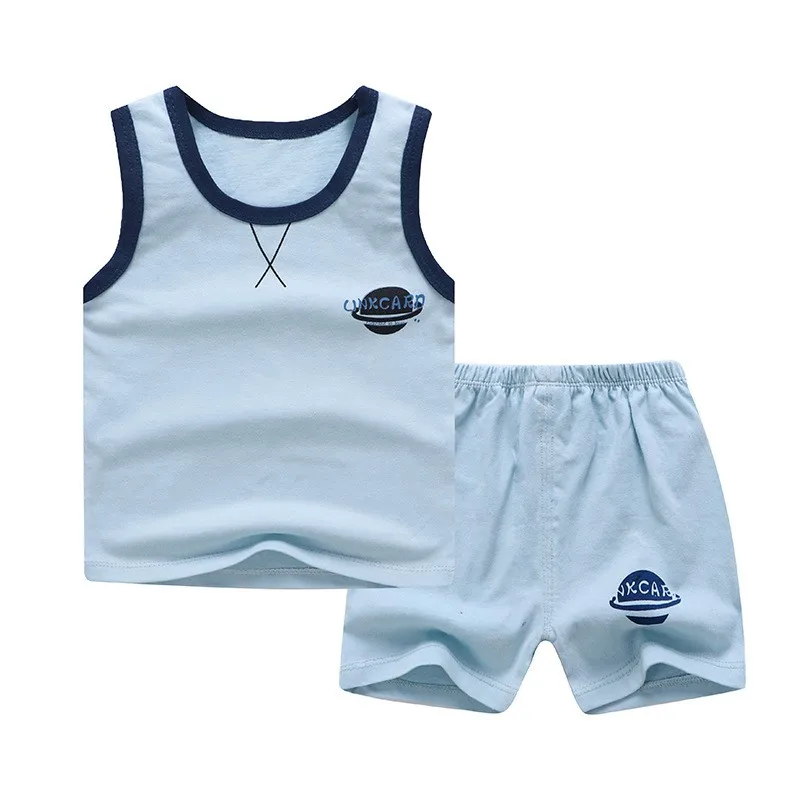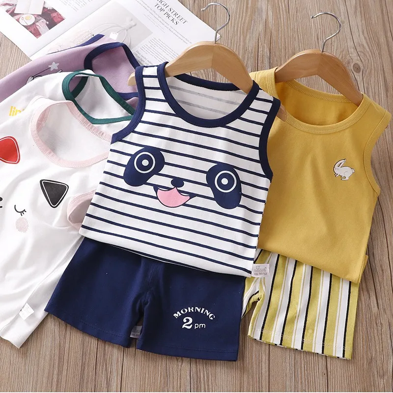 Летний спортивный костюм для маленьких мальчиков, майка + шорты, комплект одежды из 2 предметов, спортивный костюм для маленьких девочек, хлопковая домашняя одежда