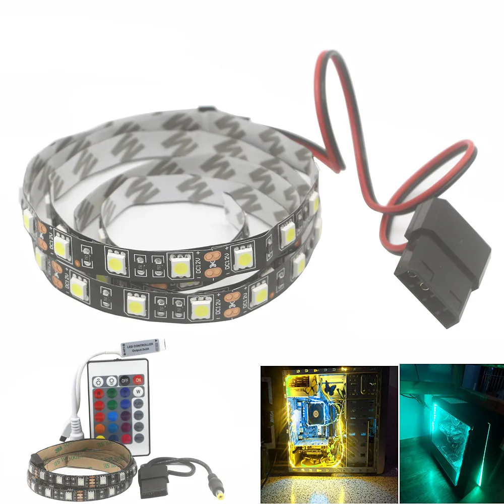 1 шт. 5050 SMD гибкая светодиодная лента 12 В постоянного тока задний фон ПК чехол для компьютера клейкая лента светящаяся Водонепроницаемая 50100200 см лента лампа