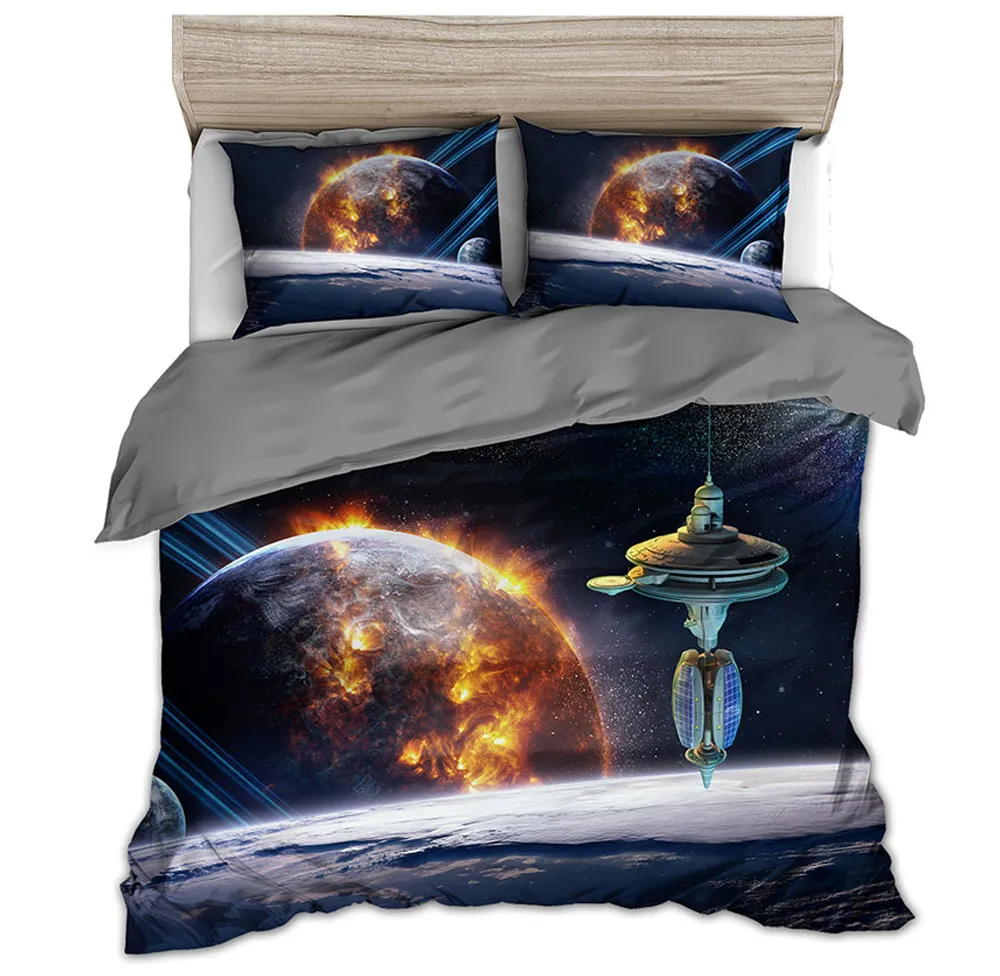 Комплект постельного белья из 2 предметов3 предметов, с рисунком космоса, звезд, 3d галактика, пододеяльник, односпальный, двуспальный, Королевский Комплект постельного белья с тематикой космоса