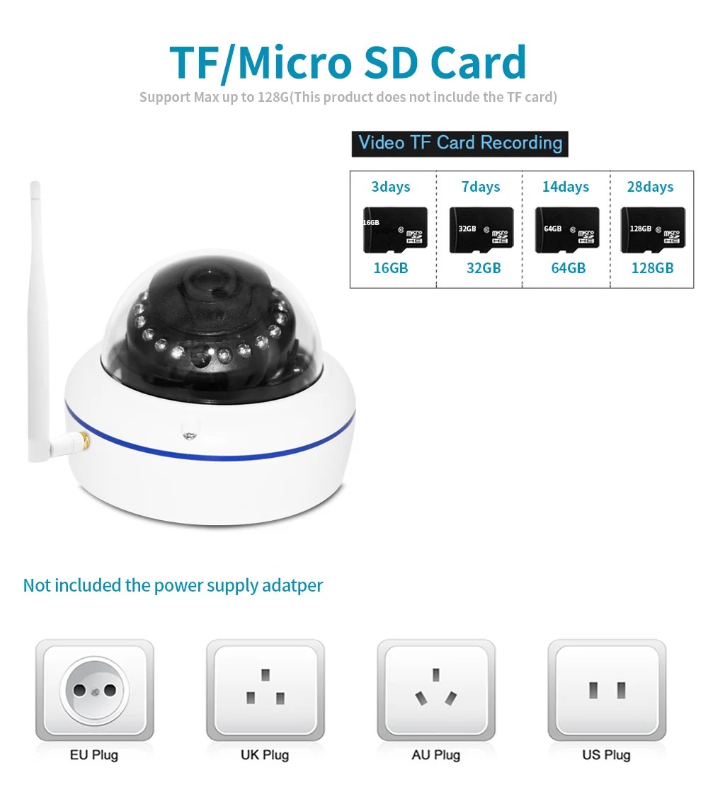 1x Беспроводная ip-камера Wi-Fi (блок питания и sd-карта не входят в комплект)
