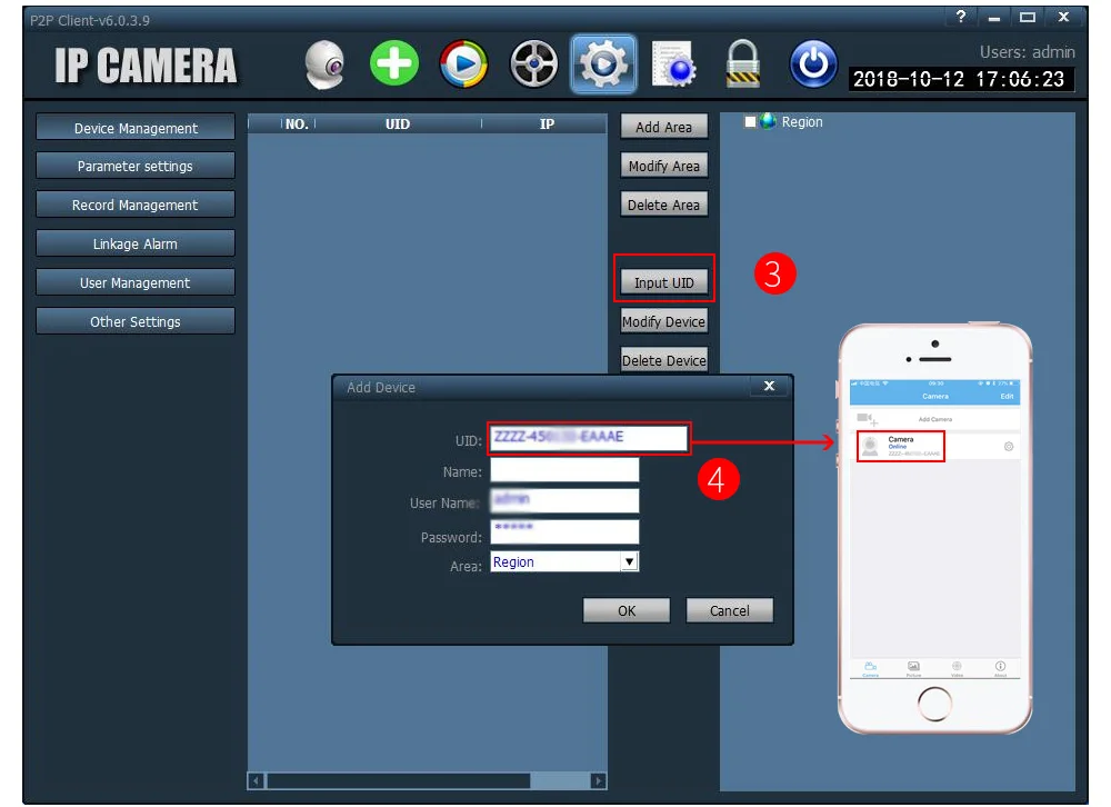 Пользователь может установить права обмена на мобильный телефон, чтобы поделиться изображением камеры в реальном времени с другими.