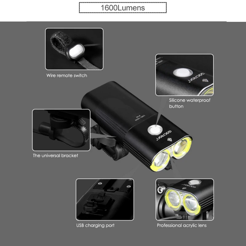 Фсветильник светильник велосипедный GACIRON, 400-1800 лм, с USB-портом, IPX6