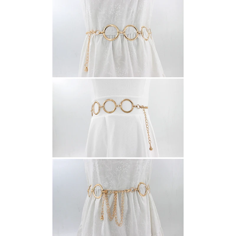 2020 Новое поступление, кольцо цепной привод модно элегантно золото металла женские солнцезащитные очки с круглой женские окружности талии платье ремни