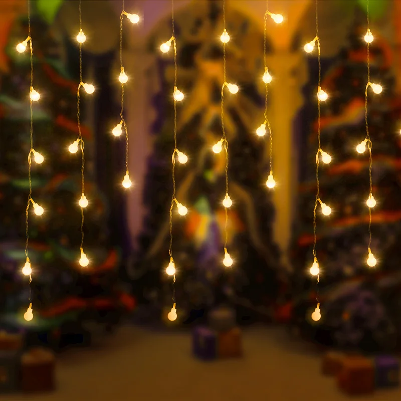 Светодиодный Рождественский светильник в виде шара, 4,6 м, наружная фонарь, сказосветильник рлянда, уличная занавеска в виде сосулек, 0,4-0,6 м, украшение для сада и дома