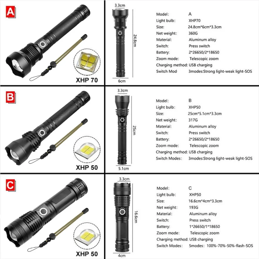 Мощный светодиодный фонарик Anjoet xhp70.2 xhp50, фонарик с зумом и usb, фонарь с аккумулятором 18650 26650, фонарик для охоты