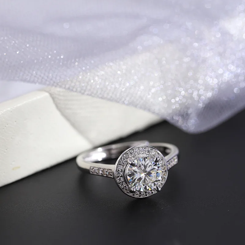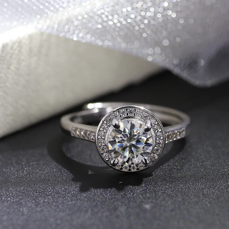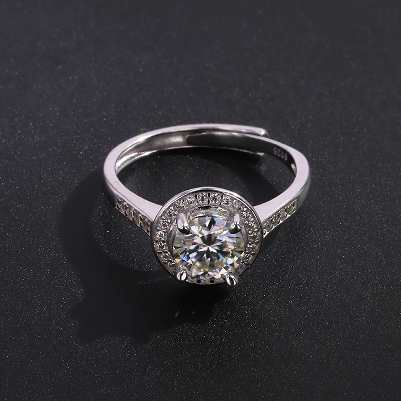 Муассанит кольцо S925 стерлингового серебра 1ct (6,5 мм) карат Белый D Цвет любимой Регулировка размера обручальные кольца для женщин, хорошее ювелирное изделие