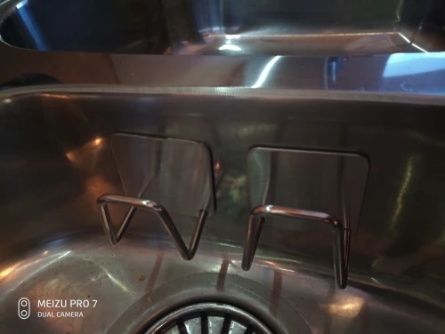 Выглядит держатель отлично. Сняли защитную пленку с нержавеющей панельки и с липкого слоя. Приклеили. Губка среднего размера отлично уместилась. Надеюсь, будет служить нормально. Заказ добрался до Москвы за месяц.