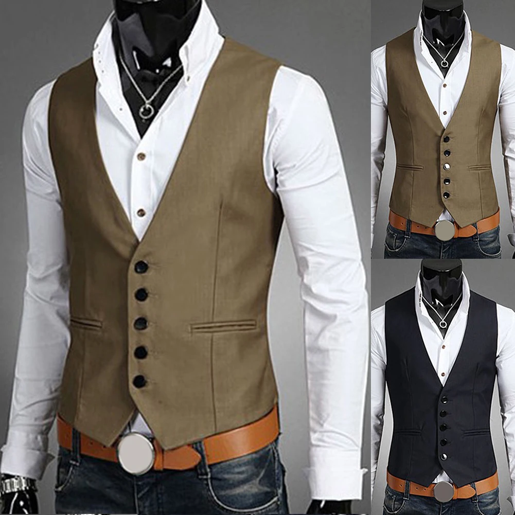 Новое платье жилеты для мужчин Slims подходит для мужчин s жилет мужской жилет Повседневный Без Рукавов официальный деловой жилет