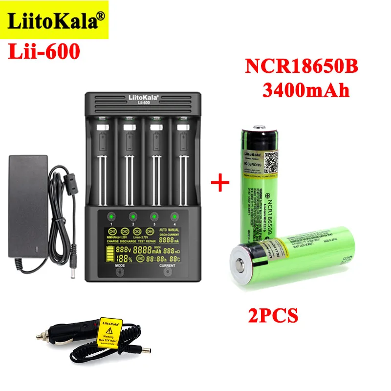 Аккумуляторы LiitoKala NCR18650B 3400 мА ч, 2 шт., зарядное устройство Lii-600 для литий-ионных аккумуляторов 3,7 в, 21700, 26650, 1,2 в, NiMH