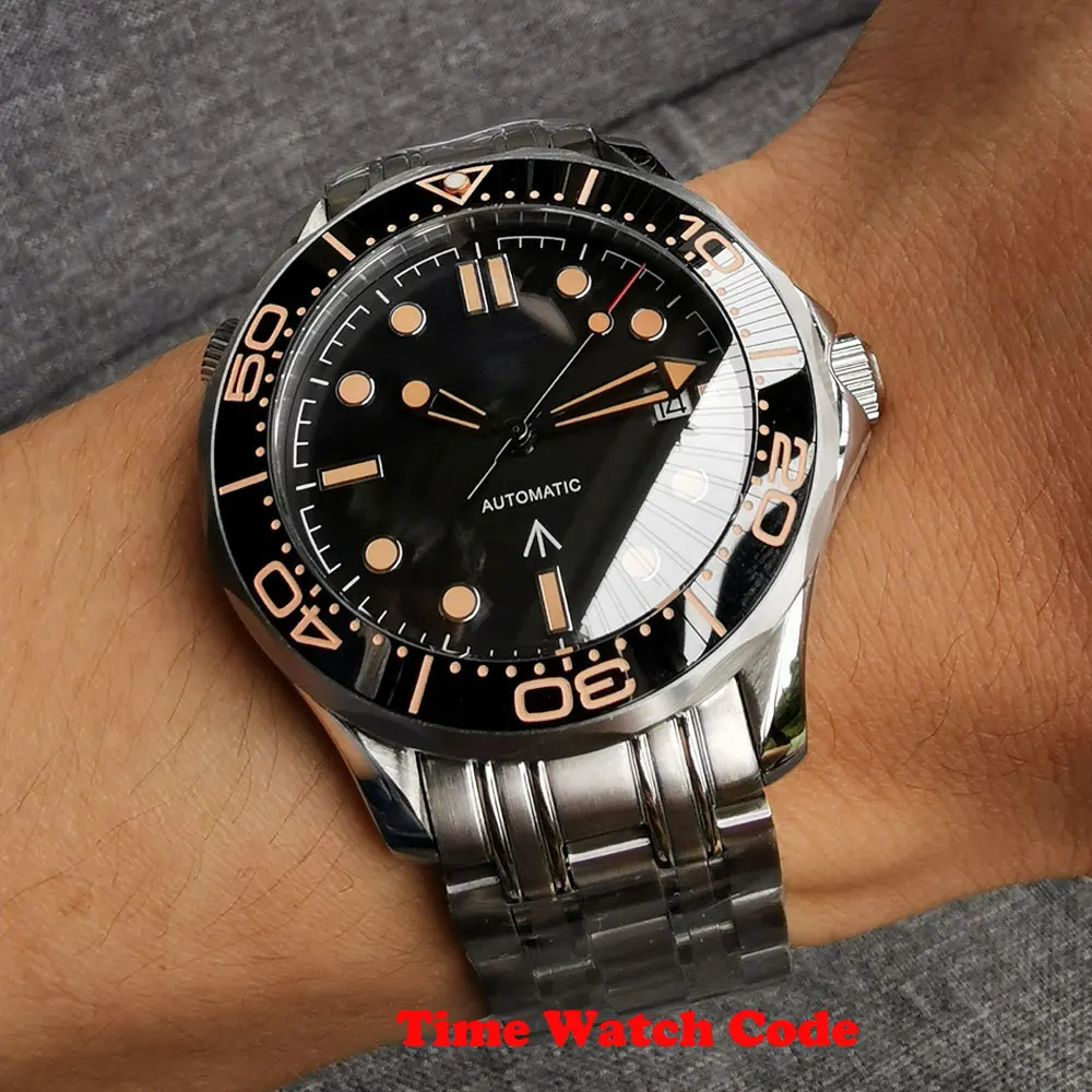 NH35Miyota8215 Мужские автоматические часы с сапфировым стеклом, черный цвет, зеленая Люминесцентная керамическая вращающаяся рамка, браслет 316L