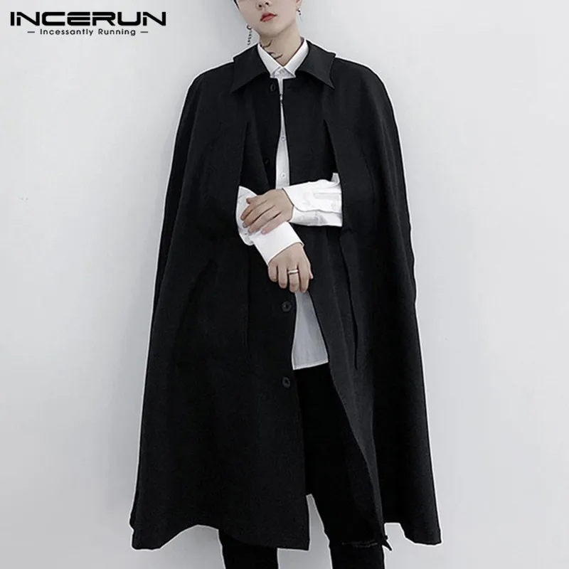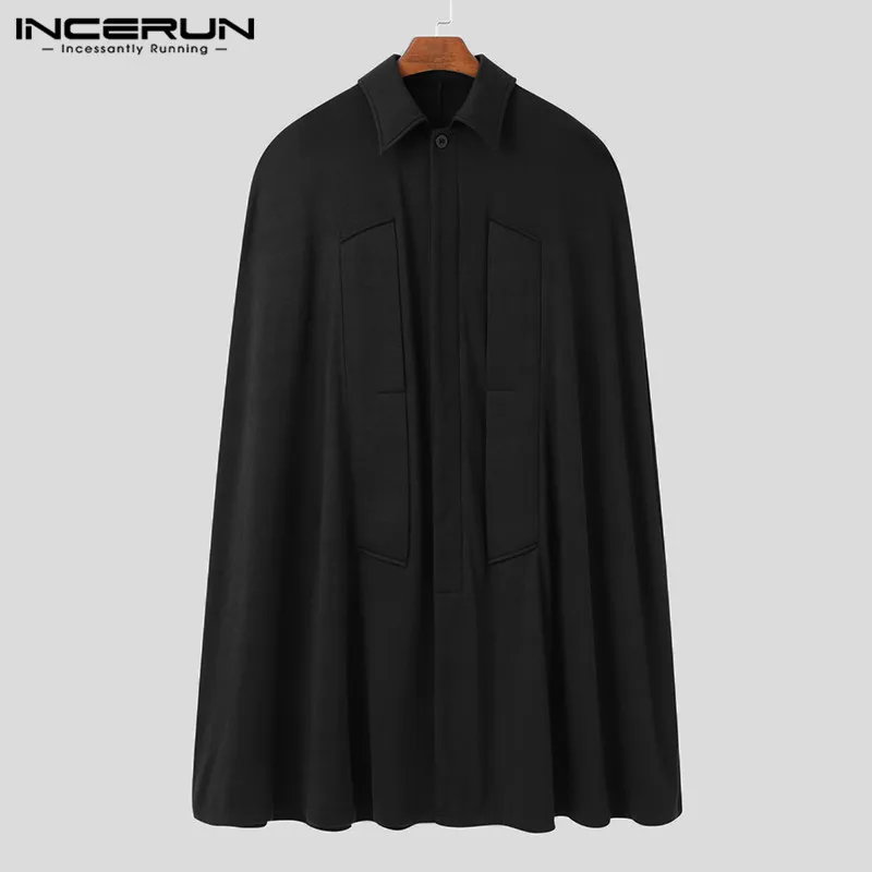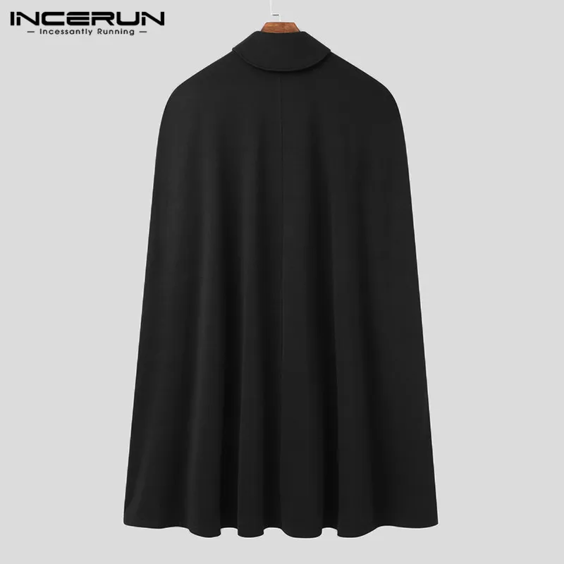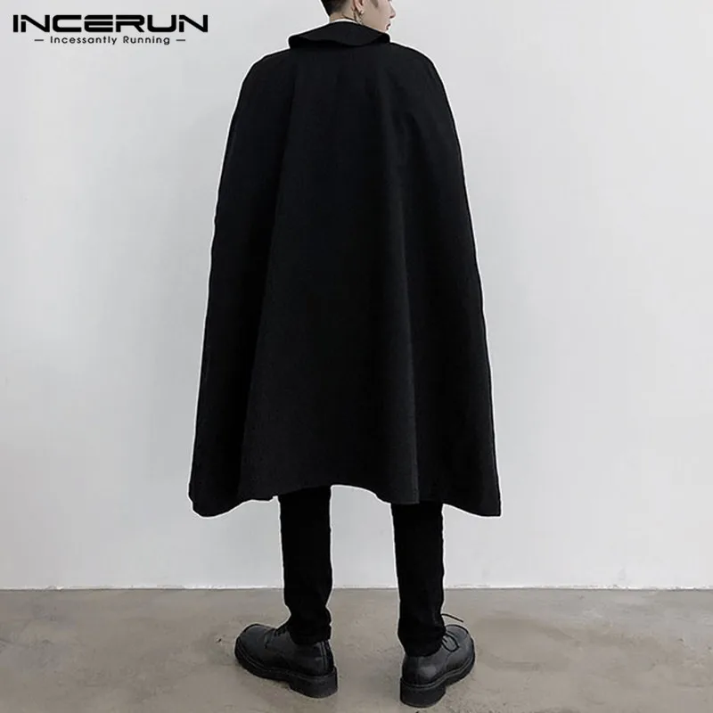 Для мужчин сплошной Цвет отложной воротник Накидки плащ INCERUN Однобортный зимнее пончо для девочек свободные карманы; Длинная Верхняя одежда; Уличная одежда S-5XL 7