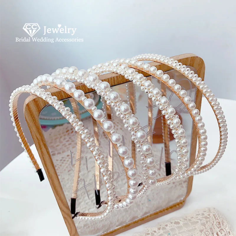 Женские Элегантные полные жемчужные простые повязки для волос для в...