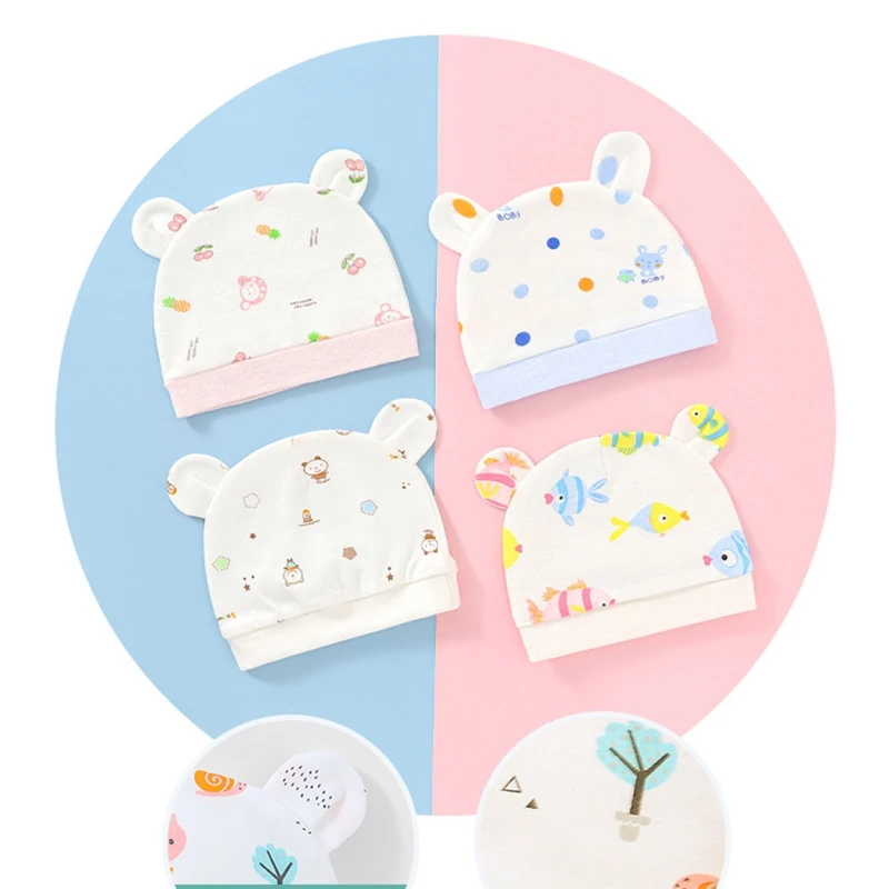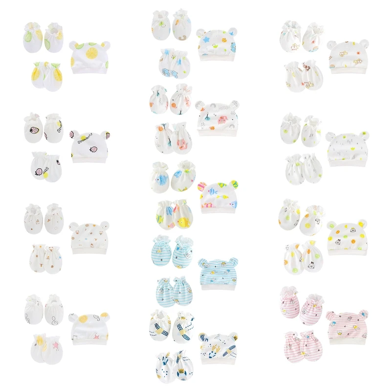 Мягкие хлопковые перчатки против царапин для малышей, комплект из шапки и варежки, комплект с кепкой, аксессуары для новорожденных на 0-3 месяца