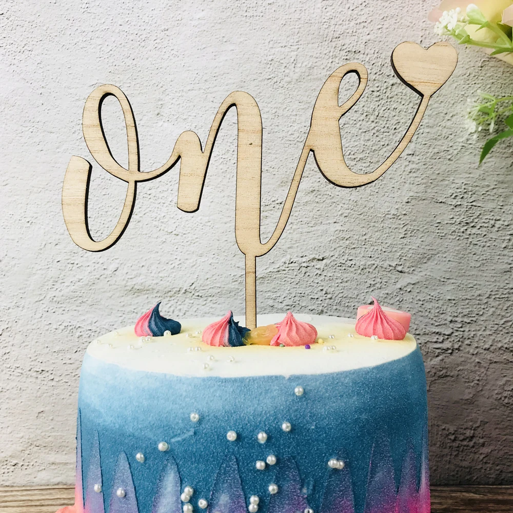 Деревянный возраст один день рождения торт Топпер первого дня рождения ребенка один торт Топпер Baby Shower вечерние украшения